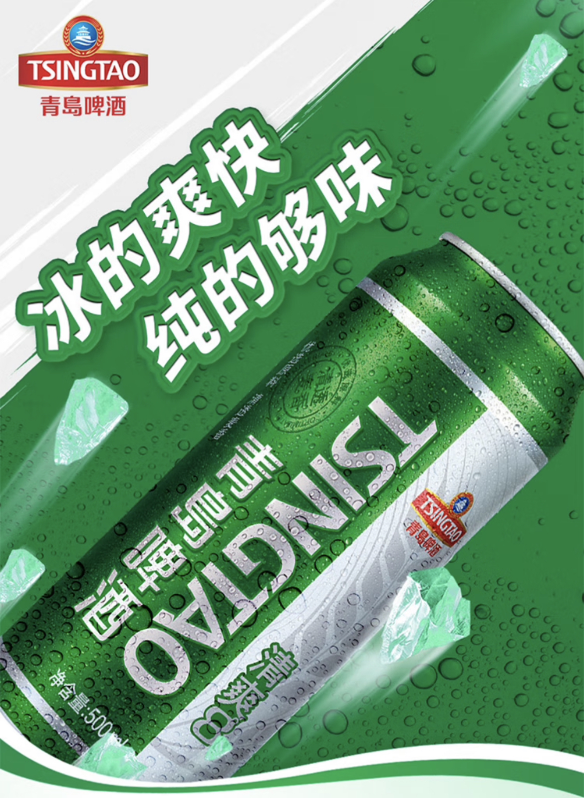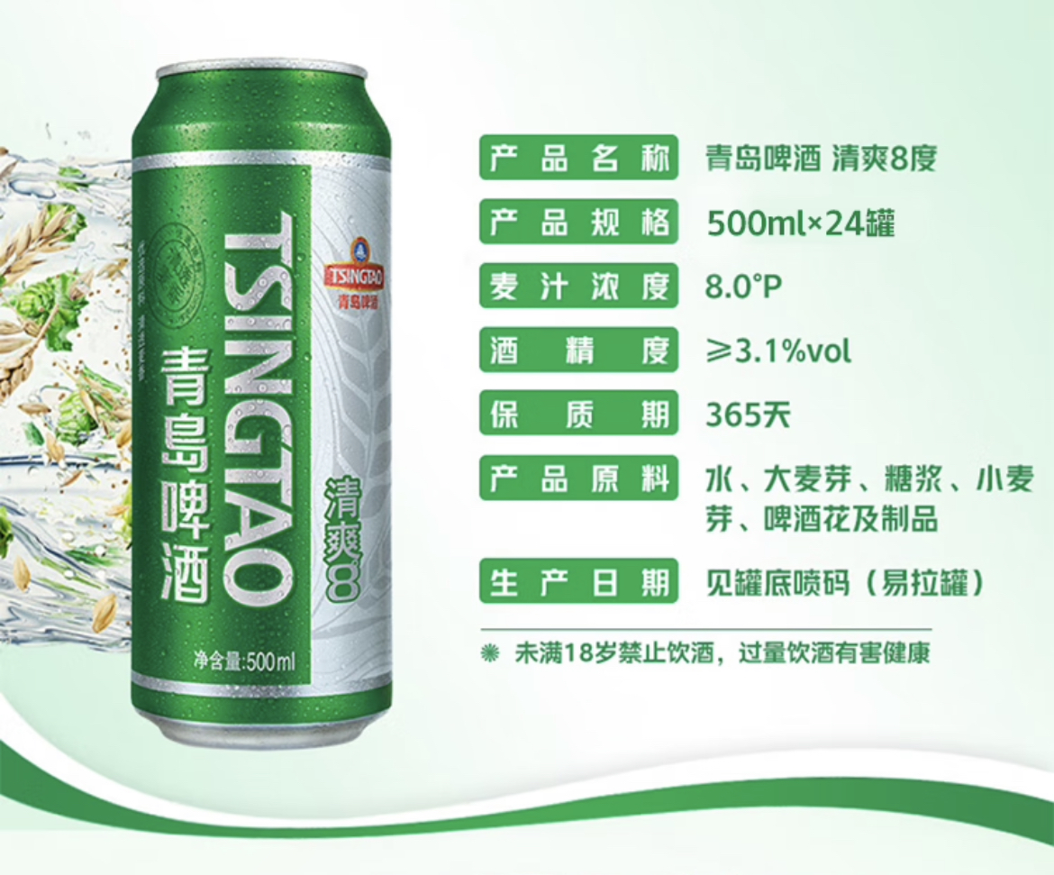 青岛啤酒(TsingTao)清爽8度500ml*24听 整箱装
