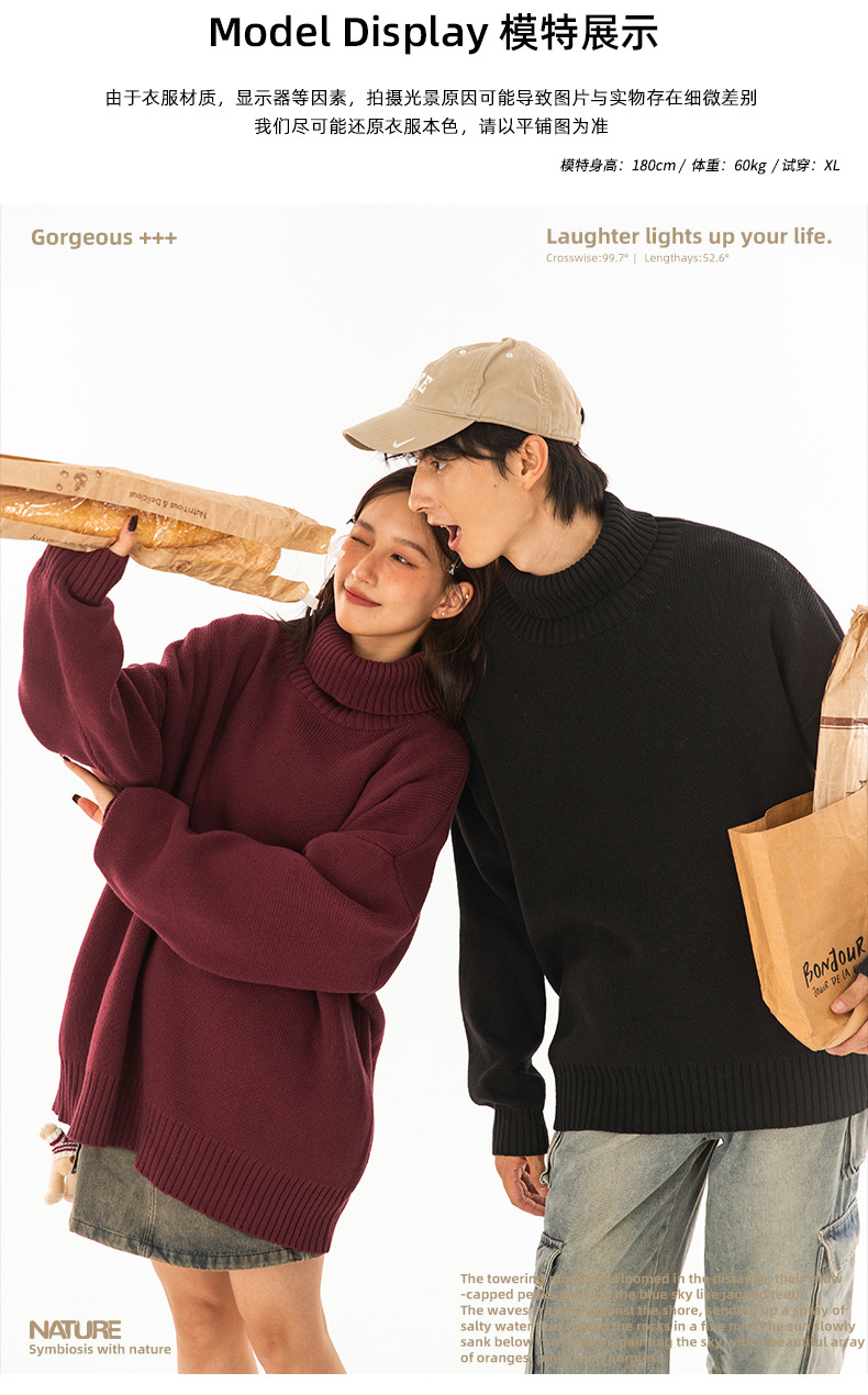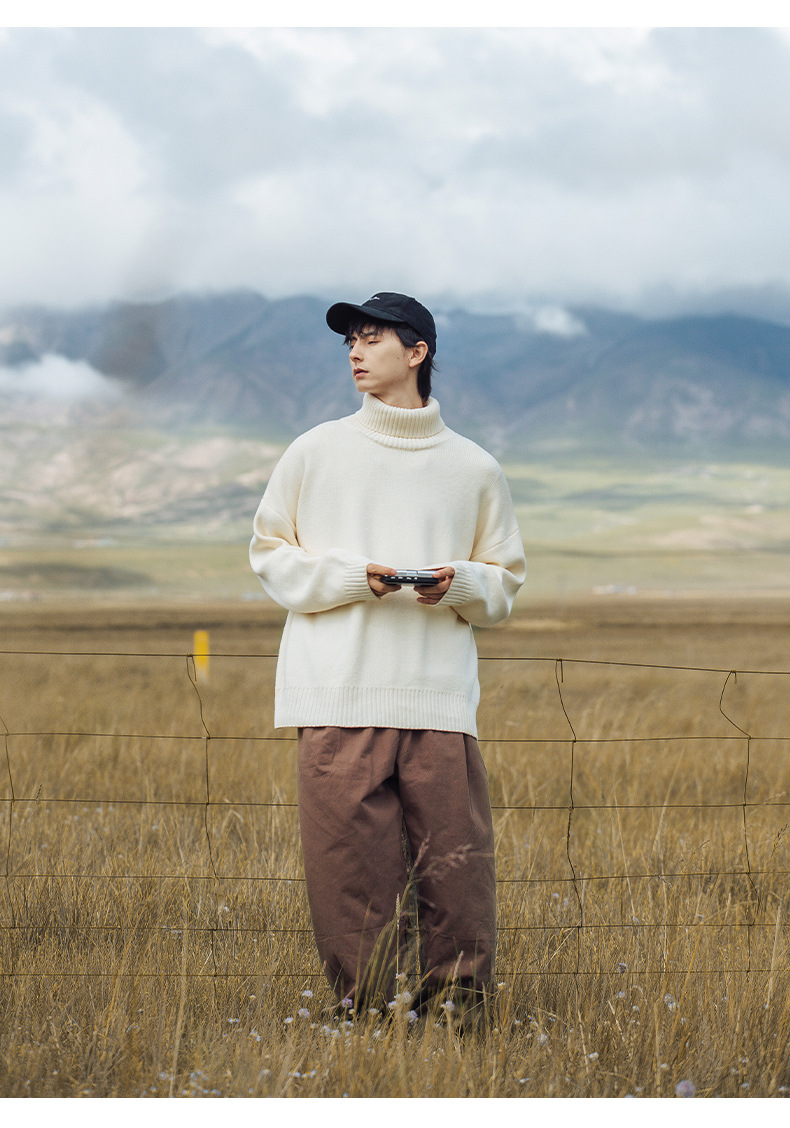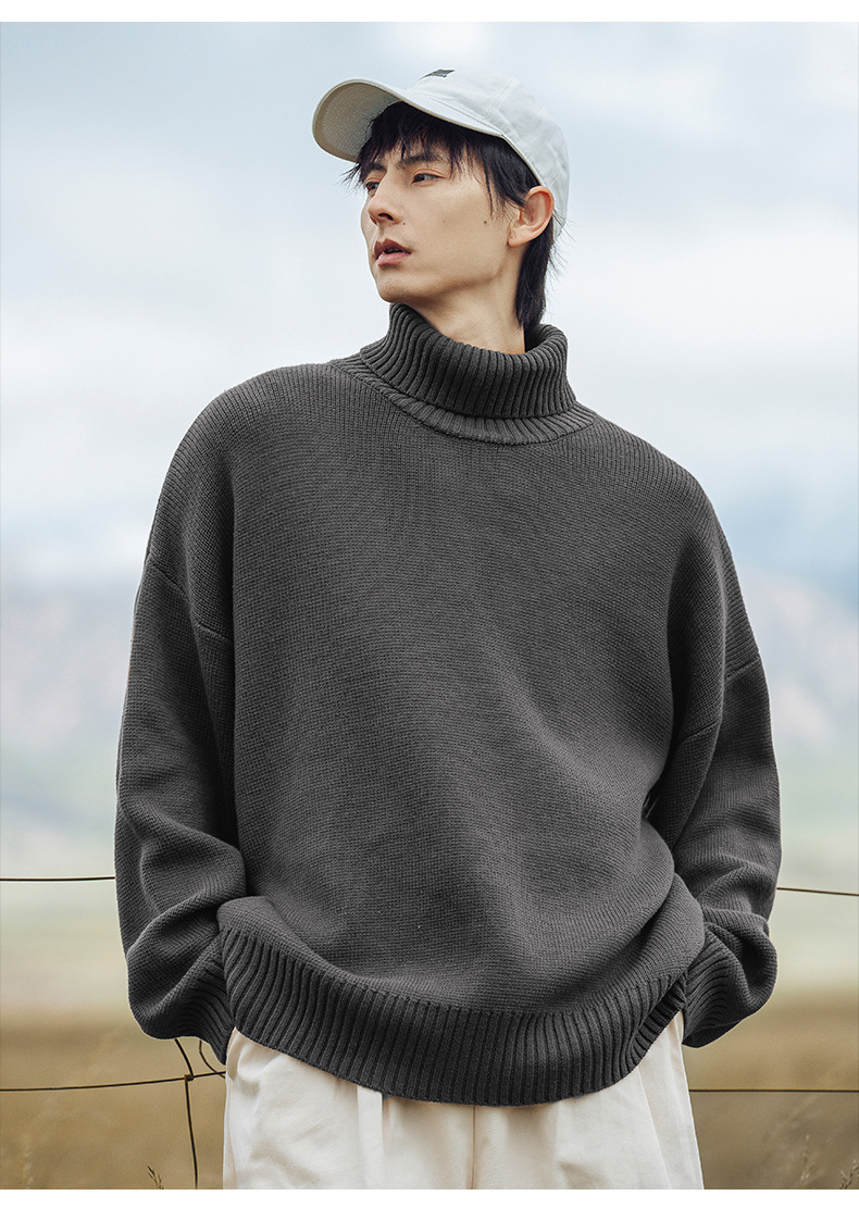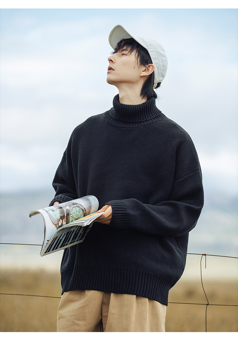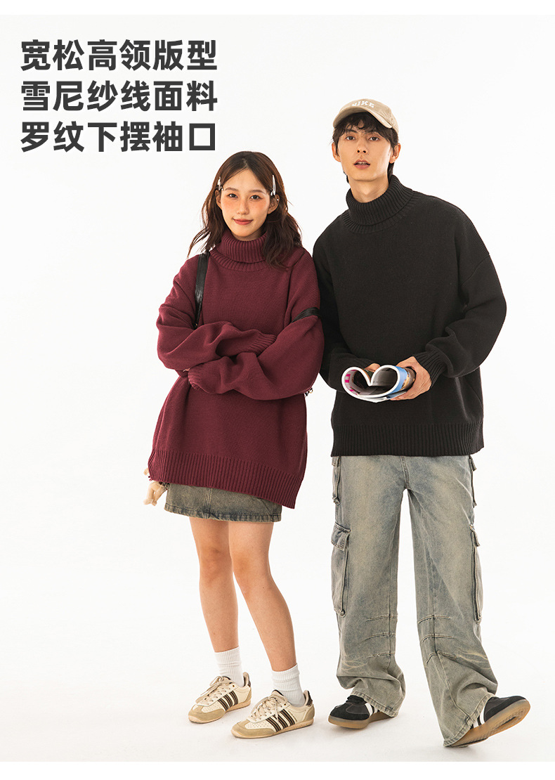 【YW】无忧购“礼物季”“圣诞清仓福利”纯色高领内搭毛衣男冬季新款慵懒风日系百搭情侣针织衫K4087(截单后3-5天发货)