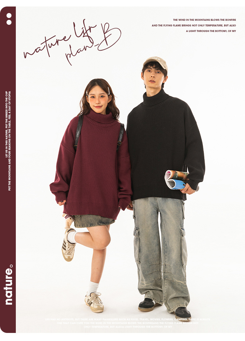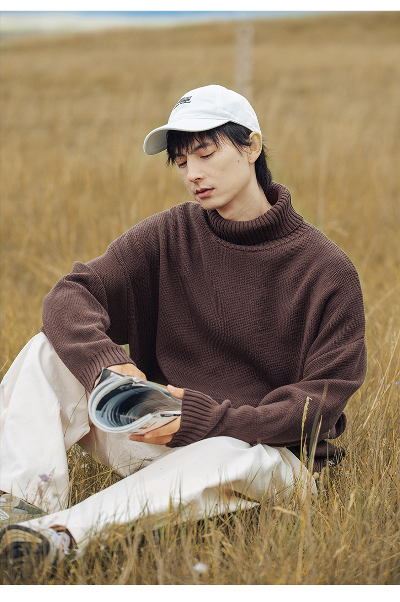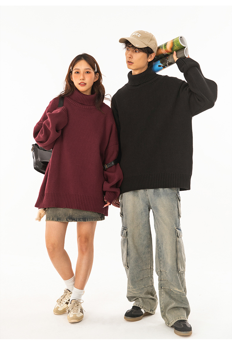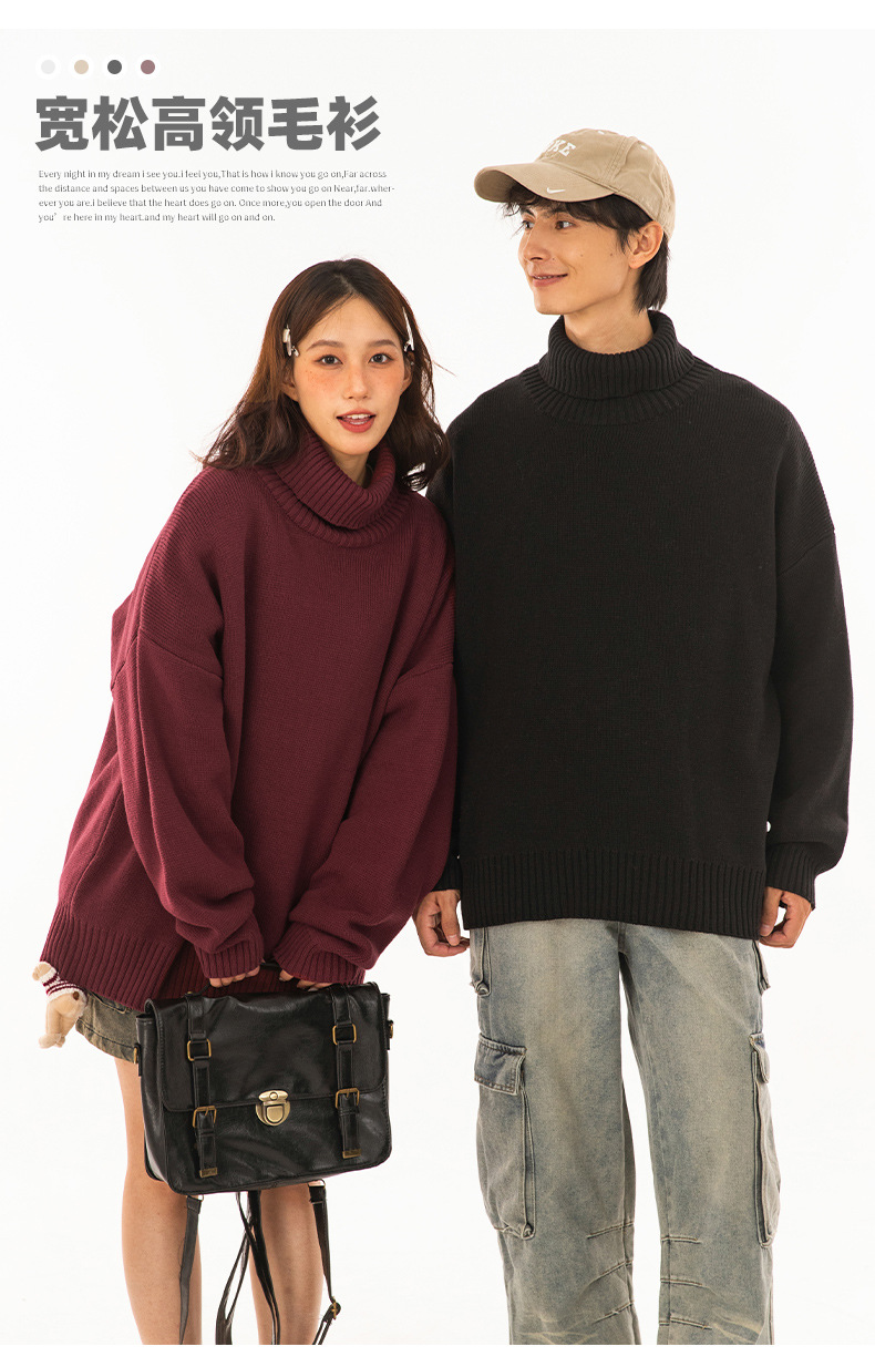 【YW】无忧购“礼物季”“圣诞清仓福利”纯色高领内搭毛衣男冬季新款慵懒风日系百搭情侣针织衫K4087(截单后3-5天发货)