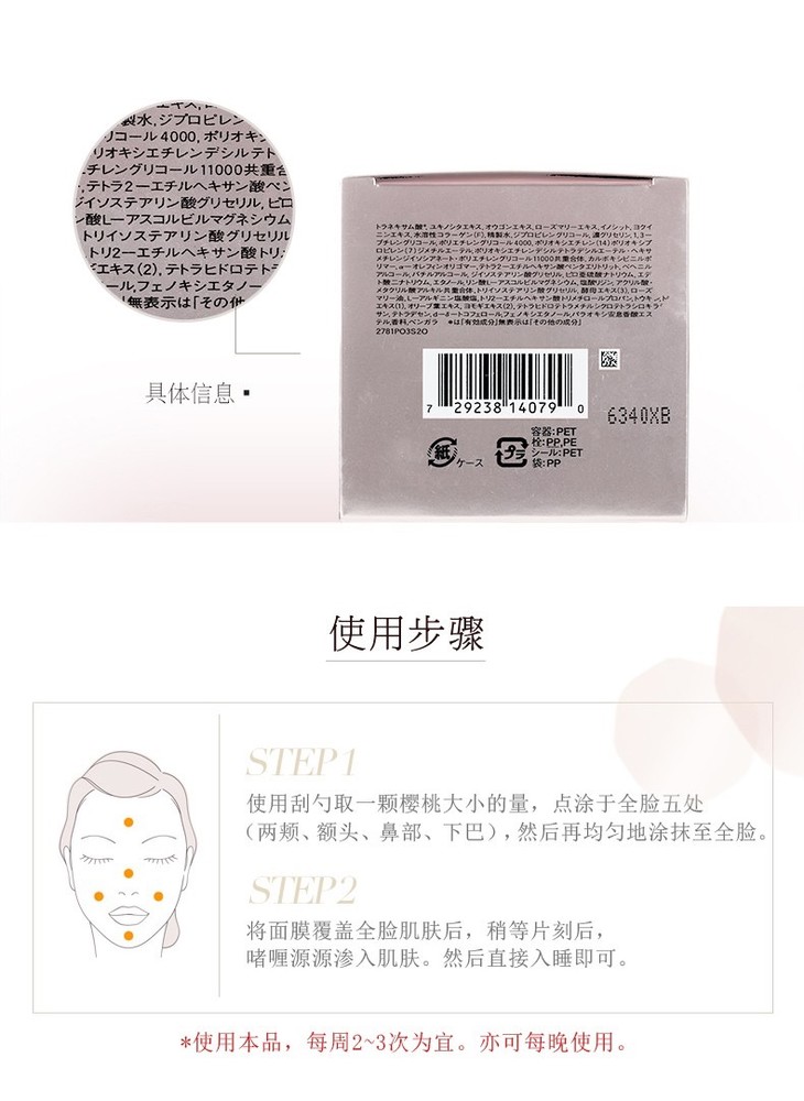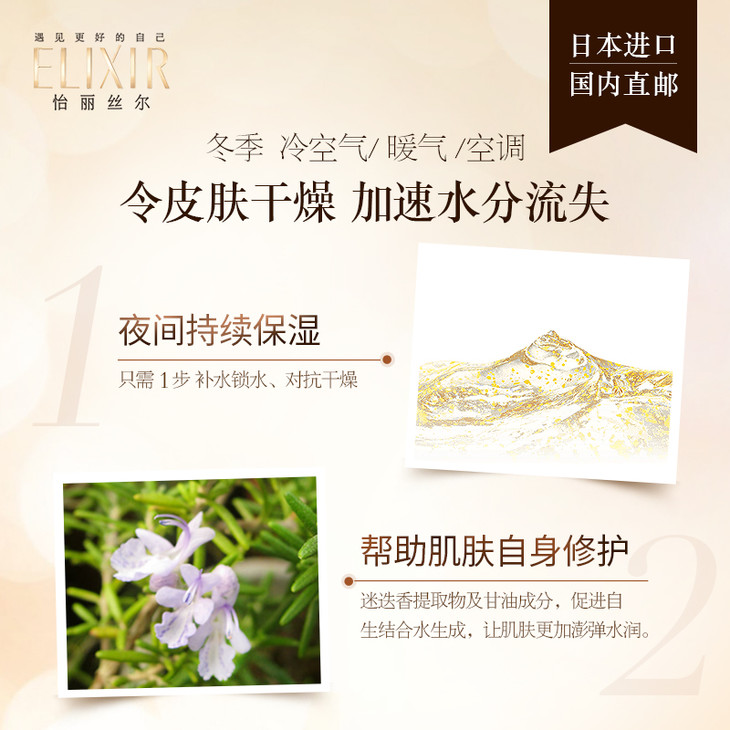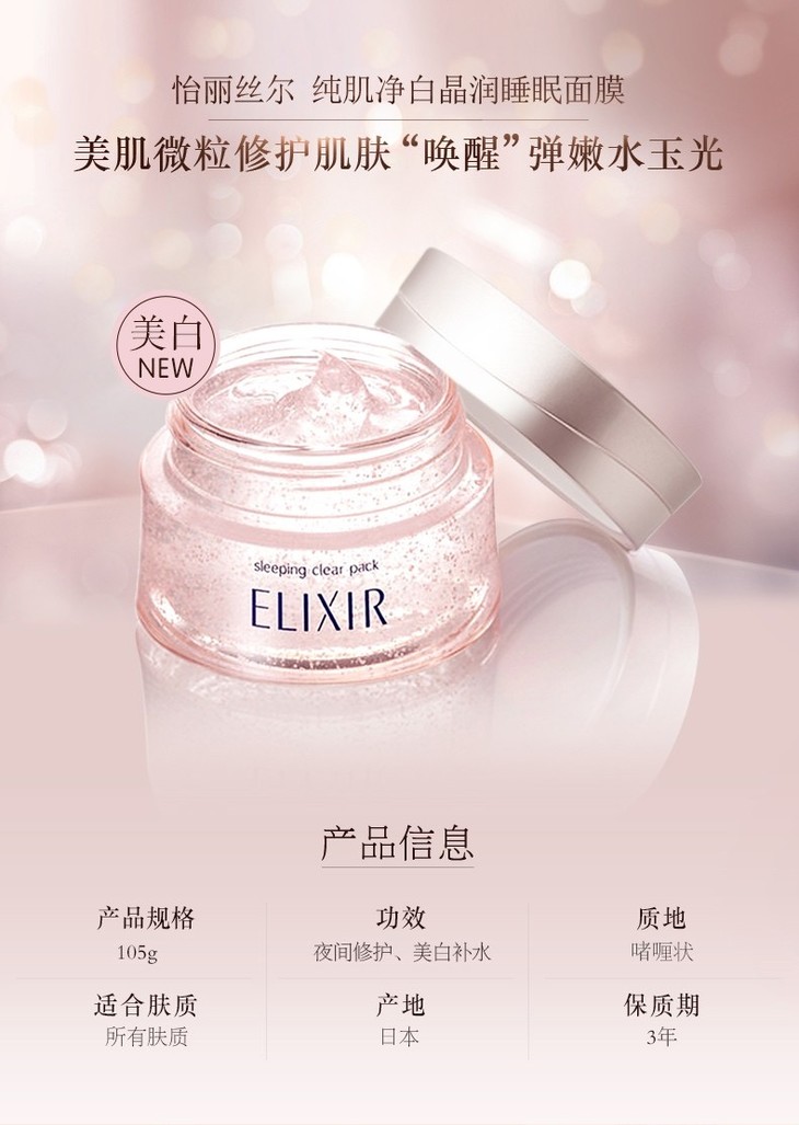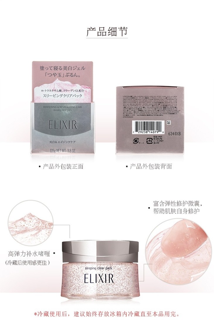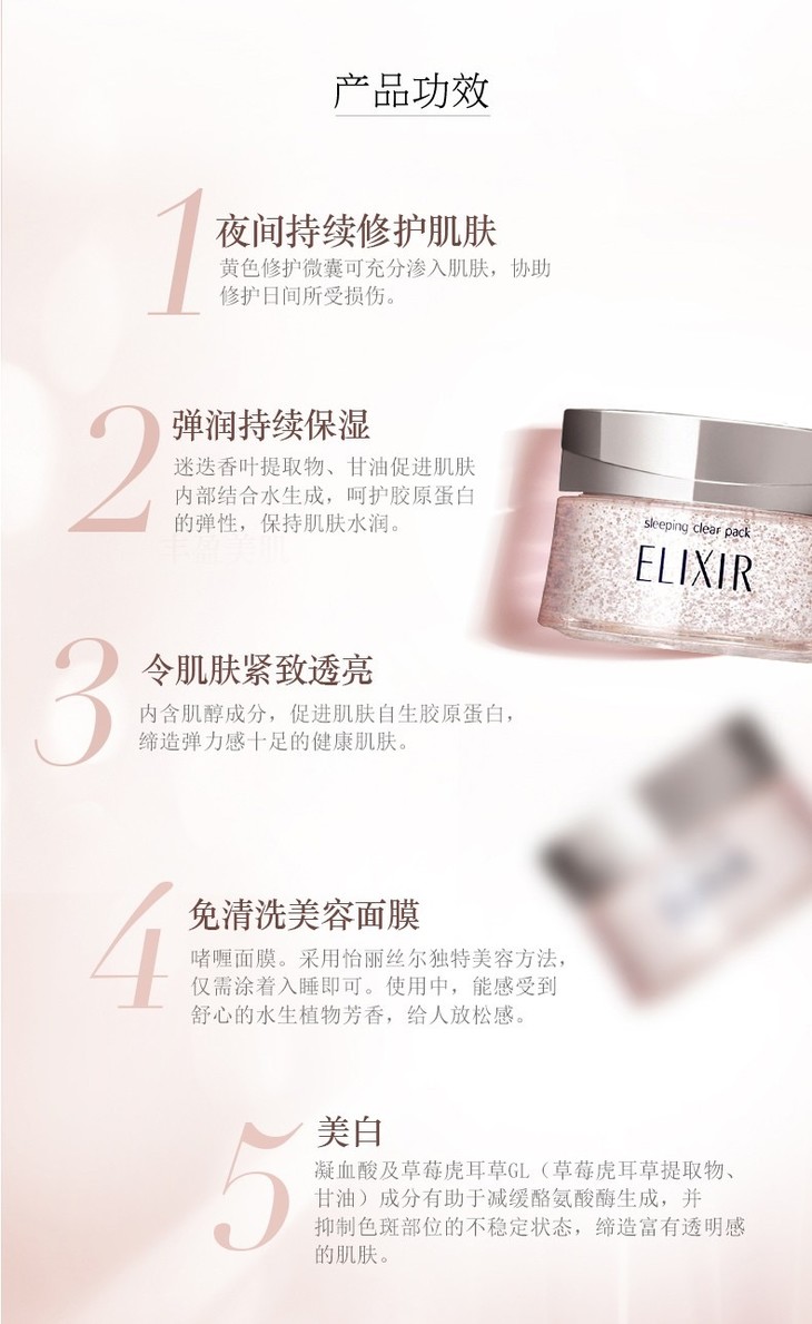 日本 ELIXIR怡丽丝尔 夜间修复美白弹润保湿睡眠涂抹面膜 105g