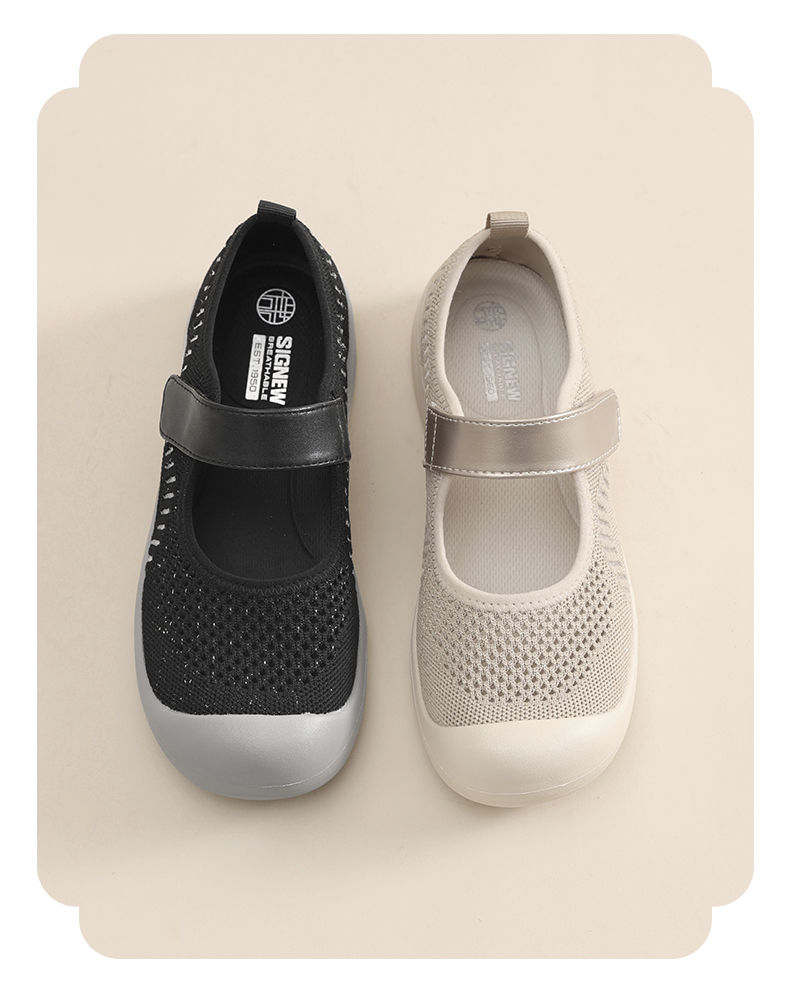 信诺网面镂空透气妈妈单鞋2025年夏季新款轻便软底包头中年凉鞋女X5C102-10