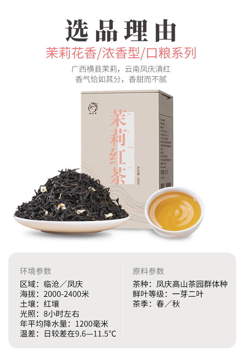 凤宁号【茉莉花茶】花香滇红茶 100克/盒