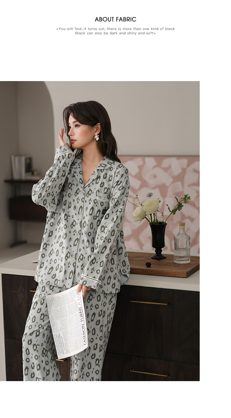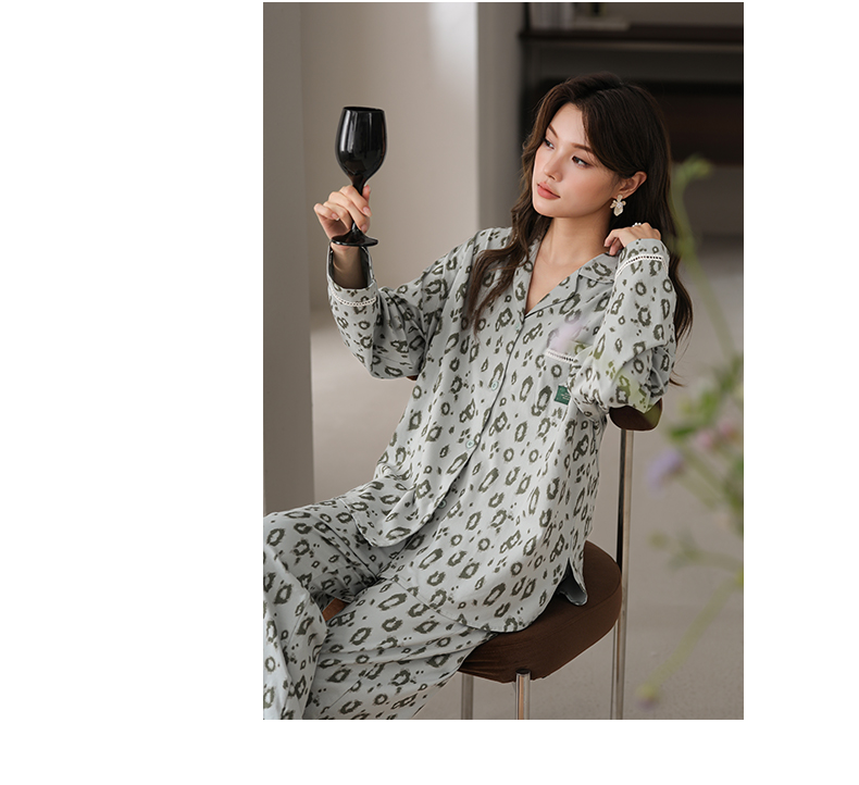可人儿春秋季带胸垫泡泡绵女士长袖长裤睡衣可外出小众家居服套装