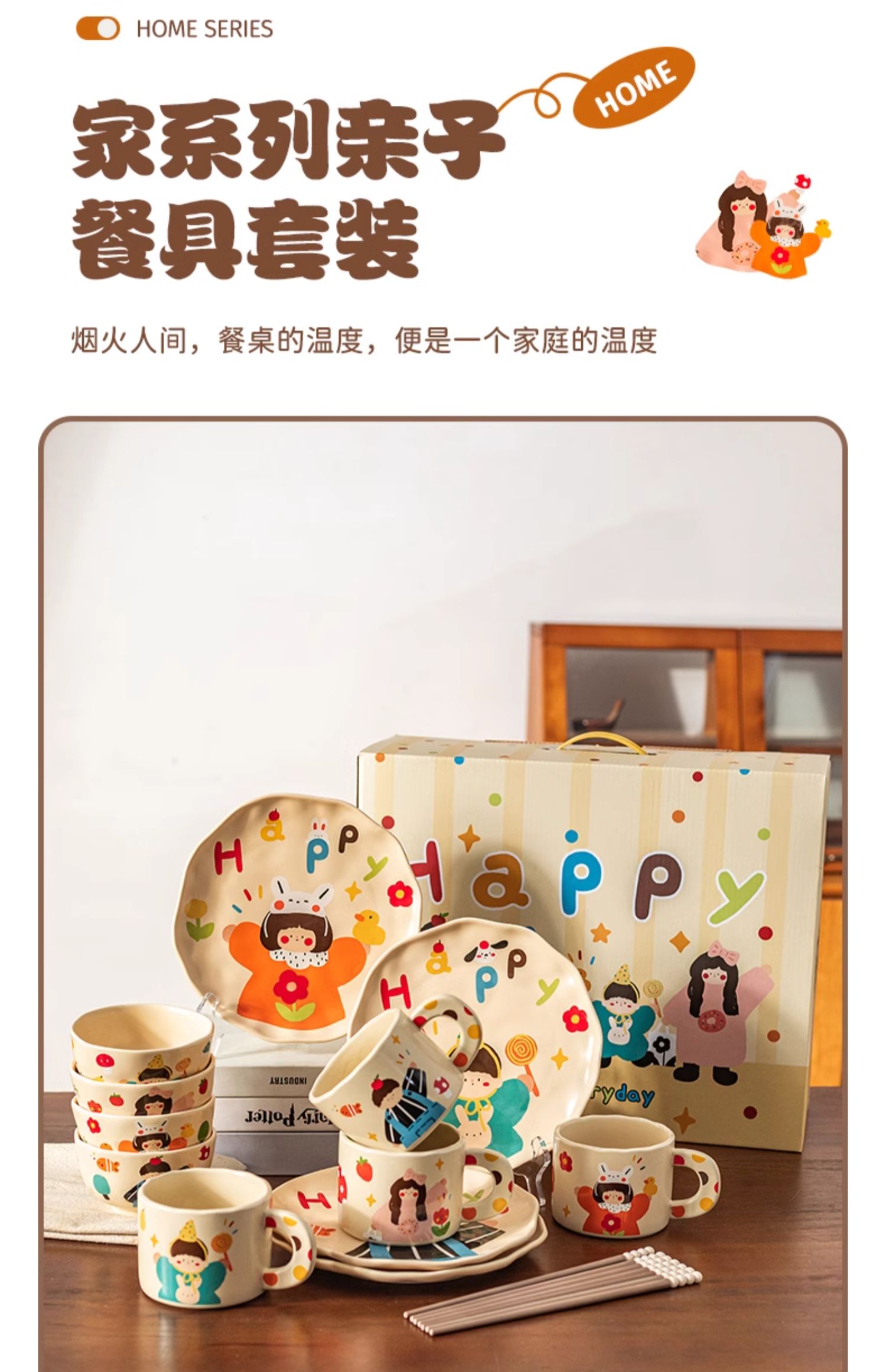 摩登主妇一家三口碗碟套装家用亲子餐具订婚结婚新婚女生生日礼物