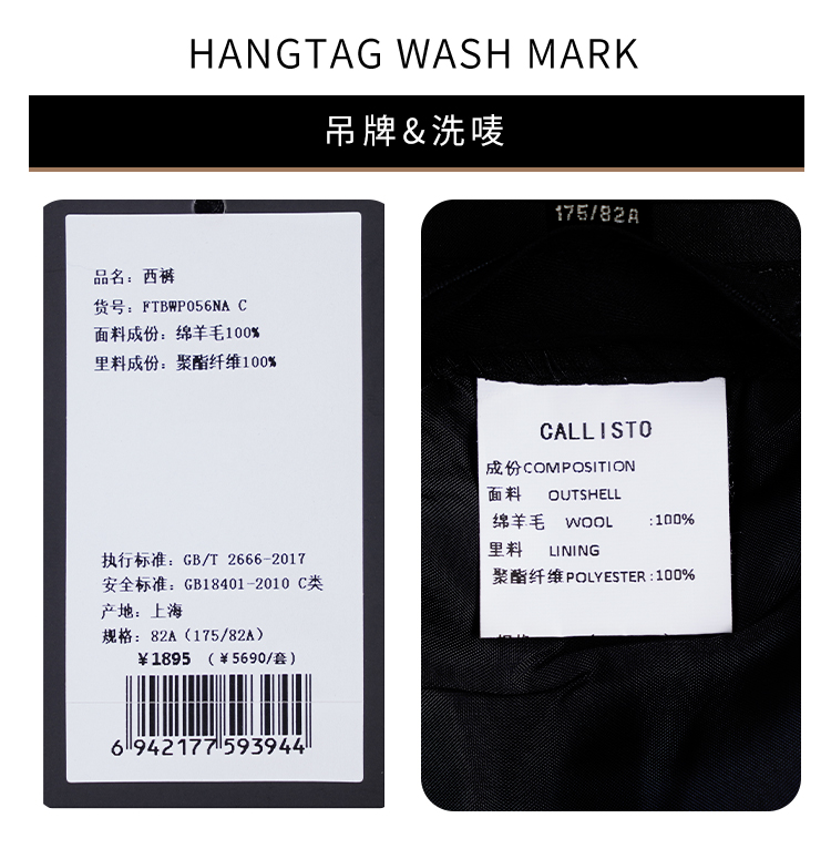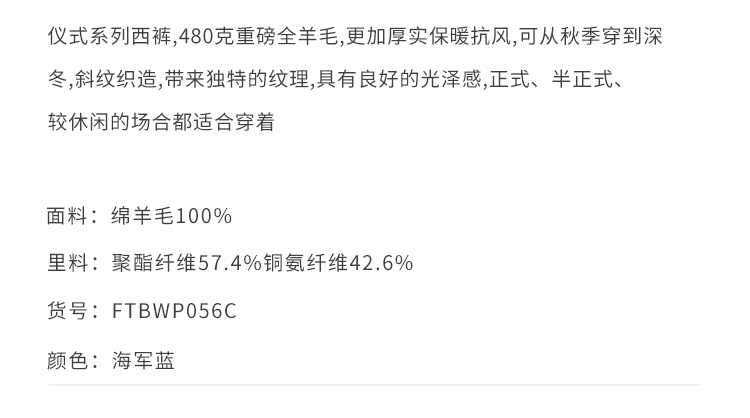 callisto藏青色绵羊毛西裤