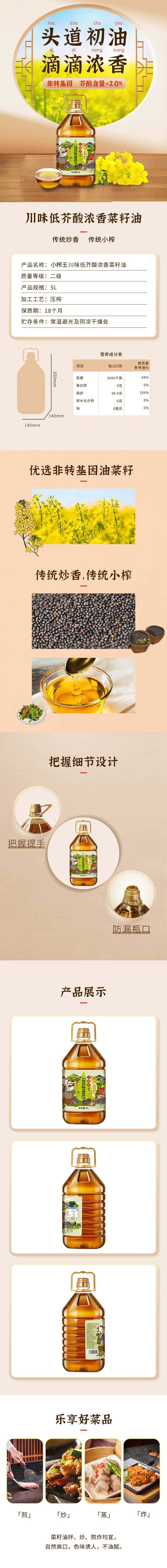【小悠甄选】小榨王川味低芥酸浓香菜籽油5L