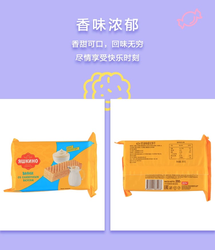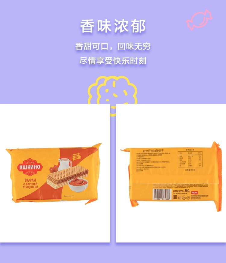 【中欧班列精选】WWJ俄罗斯KDV巧克力坚果青柠奶油炼乳榛子酱风味威化200g/袋