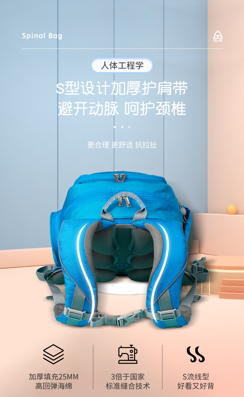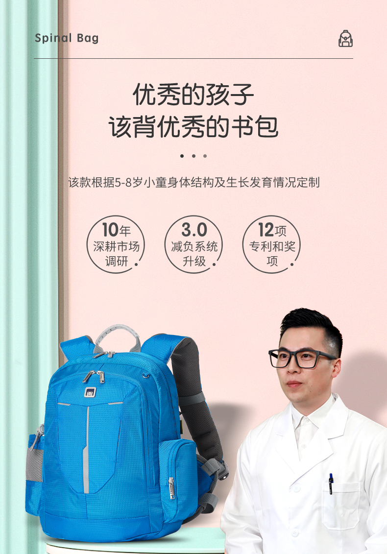 他们家的书包不用花哨的外观,也不增加无效功能,扎扎实实把书包的减负护脊功能做稳,减负效果是大人孩子们都亲自试背检验过的。