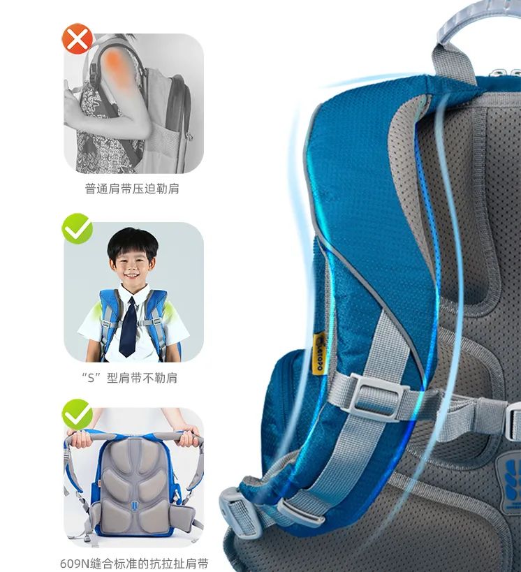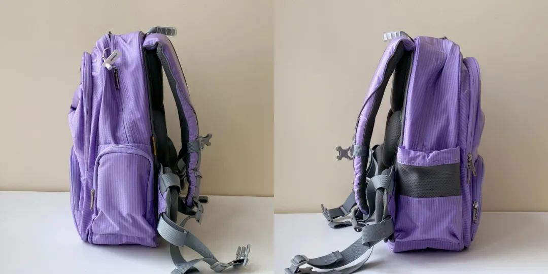 太软榻容易让重力集中在一处,拉低了重心进而费肩伤腰;太硬的呢,使用起来不灵活,尤其是课桌太窄就容易放不进。所以我更推荐可以收放自如、有硬度可以分摊书包重量。