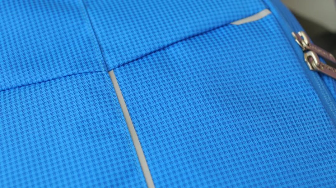 其次就是它的肩带,做到了609N,远高于国家缝合标准(196N),更抗拉扯。一般书包最容易坏掉的就是肩带,而它缝合做到极致,并加固了肩带,更加耐用,很细节了。