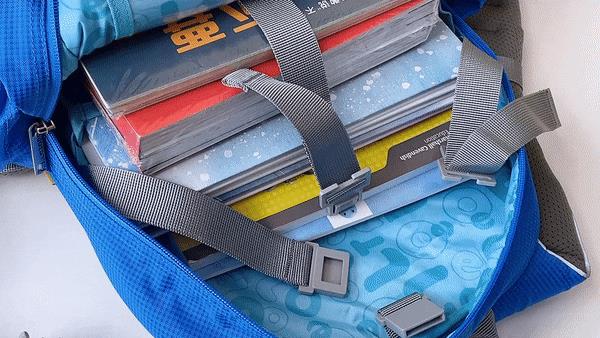 而乐同特意在内部设计了十字锁扣,通过锁扣固定书本,还能调节松紧程度,无论是放多少本书都能被固定住,更贴合脊椎,避免摇晃撞击。