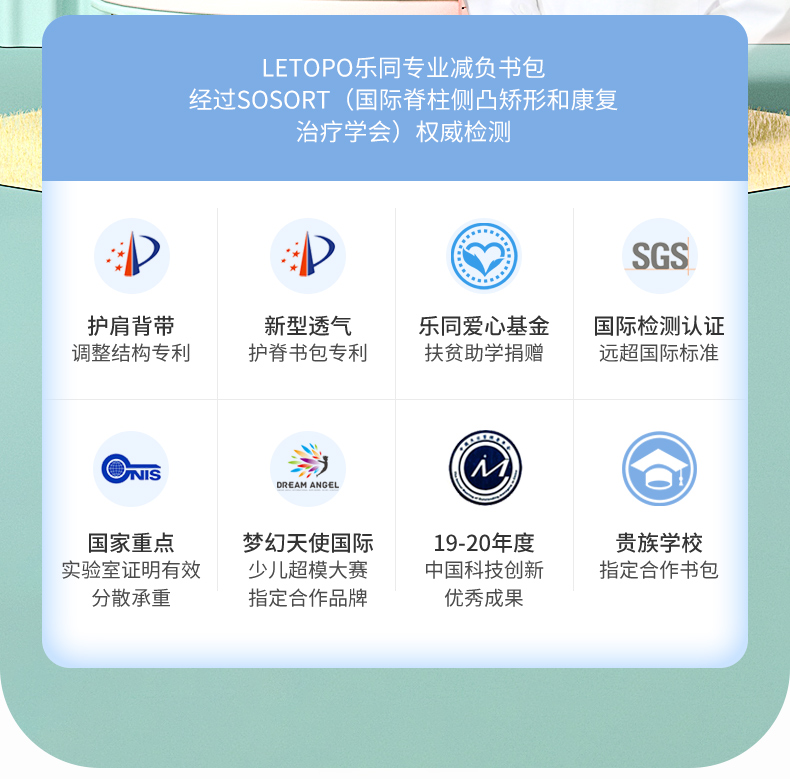 【限时送笔袋】【连续6次测评推荐款!】六面定位减负释压系统,加宽加厚不勒肩!孩子背着超喜欢,一点不累人!LETOPO乐同护脊减负书包!
