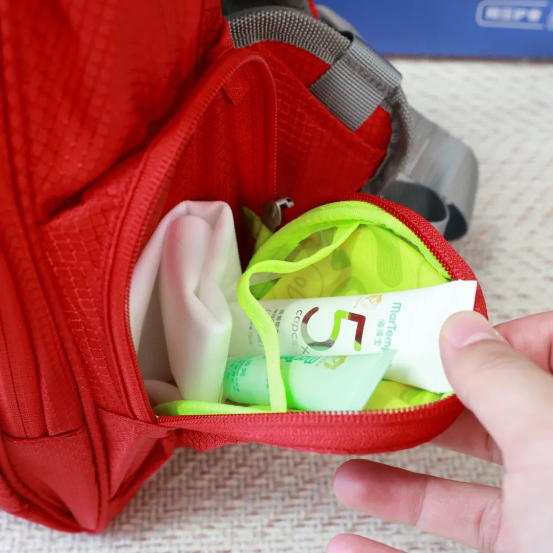 左边侧袋有双重搭扣,能够更好地固定住水壶或者雨伞,弯腰跑步都不会掉落。右边侧袋则是有专属公交卡袋,直接把公交卡放里面,不用拿出来就能够对着机器刷卡,方便多了。