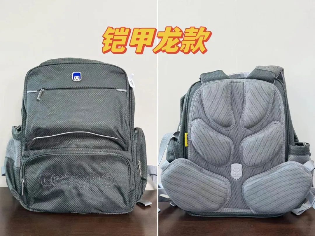 “铠甲龙系列”是乐同新品的护脊书包,专为小学1-6年级孩子研发的,有小童、中童、大童三个尺寸,适合110-175cm阶段的孩子使用。