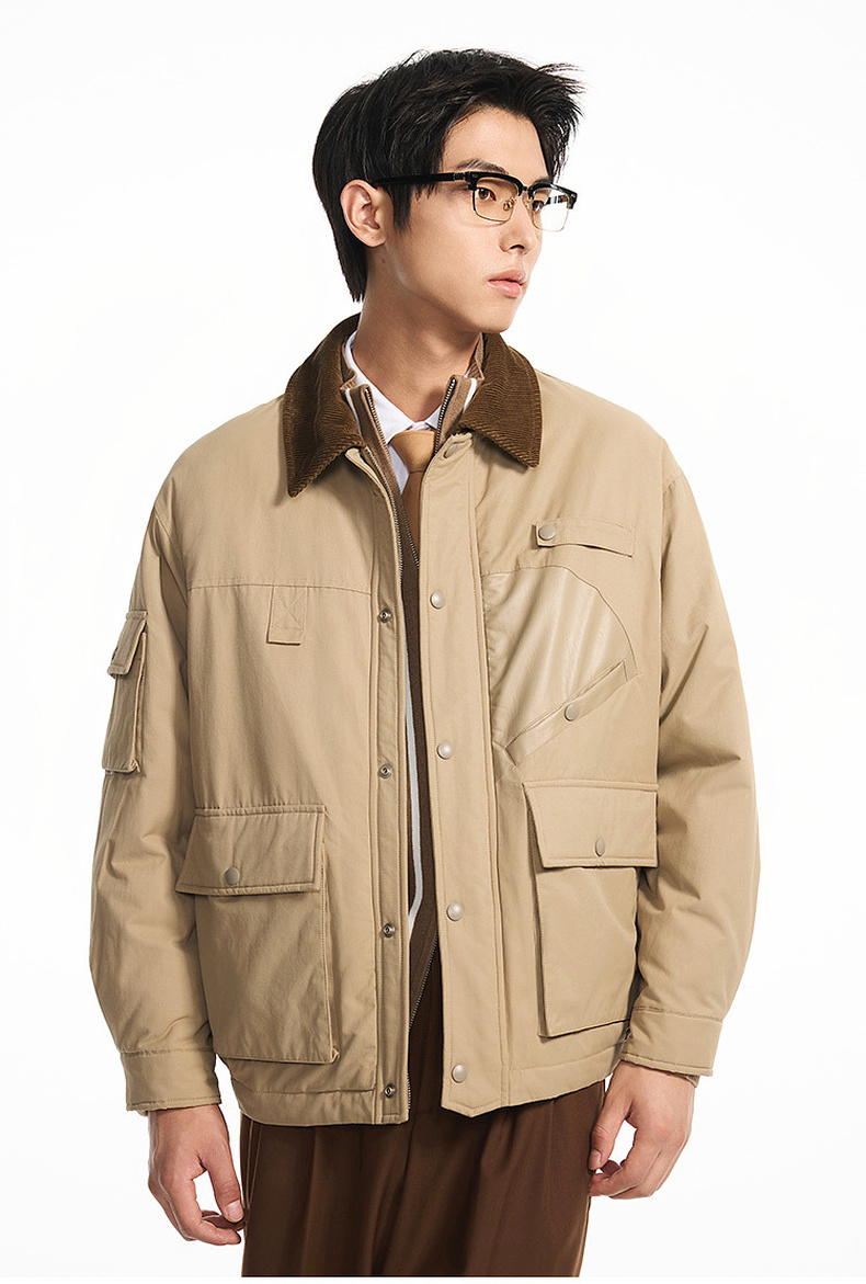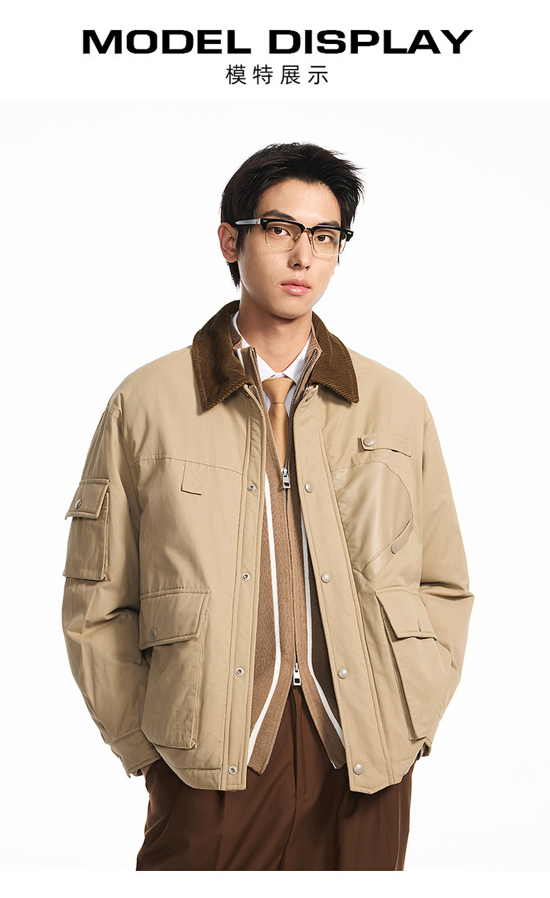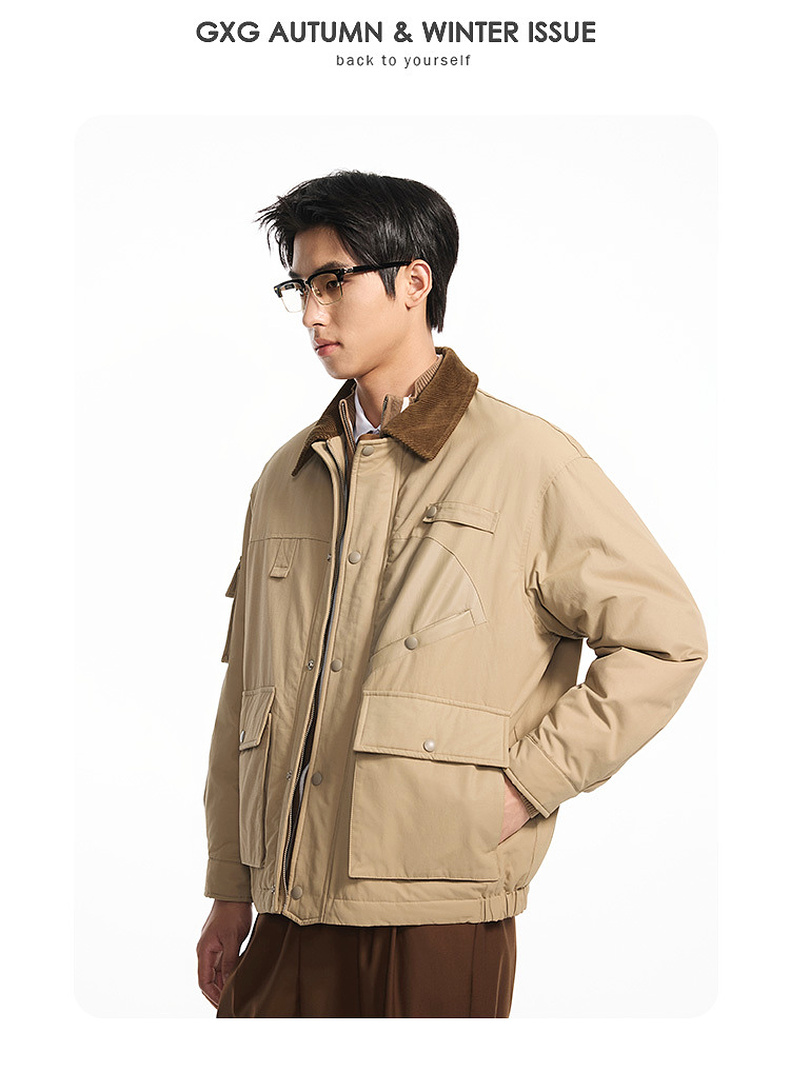GXG男装【90%鸭绒】冬季简约灯芯绒翻领保暖男式短款羽绒服K&C