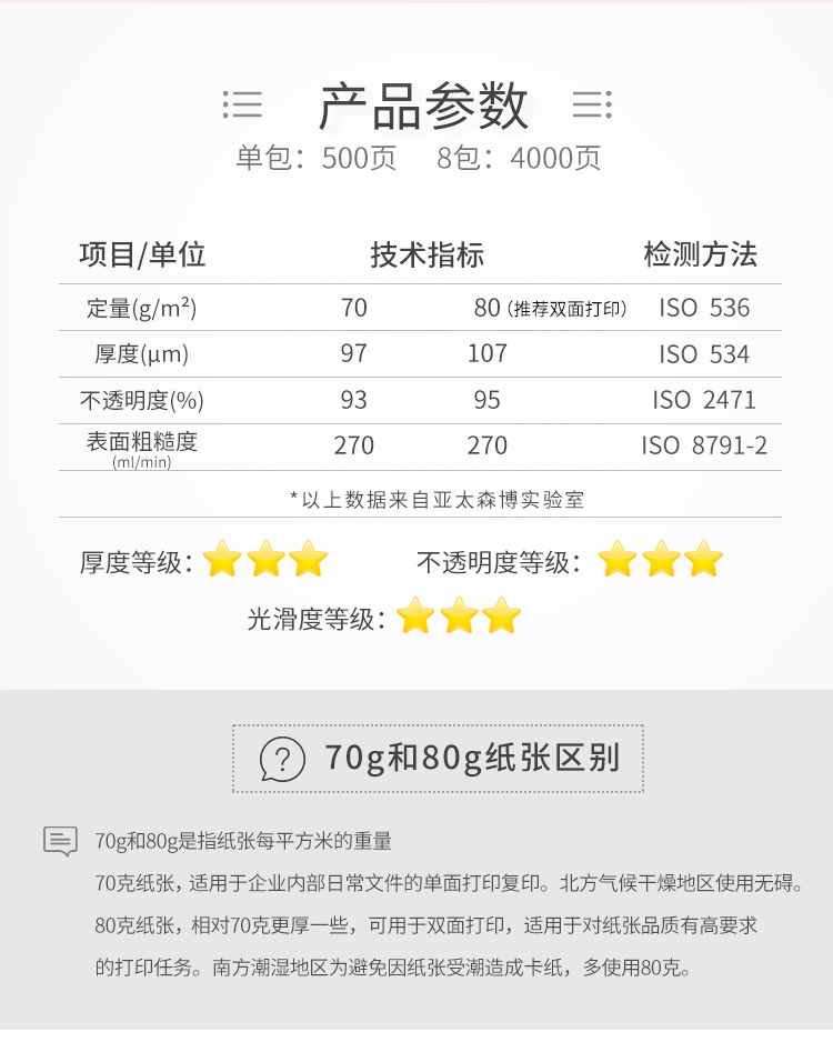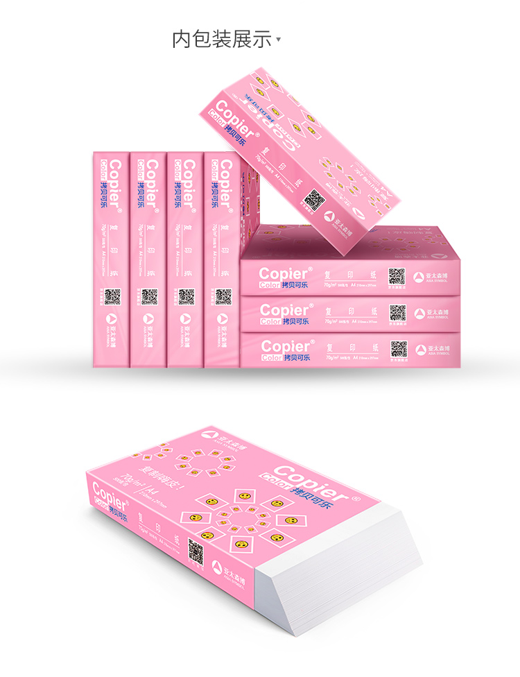 亚太森博 拷贝可乐 70g A4 复印纸 500张/包 8包/箱 (4000张)