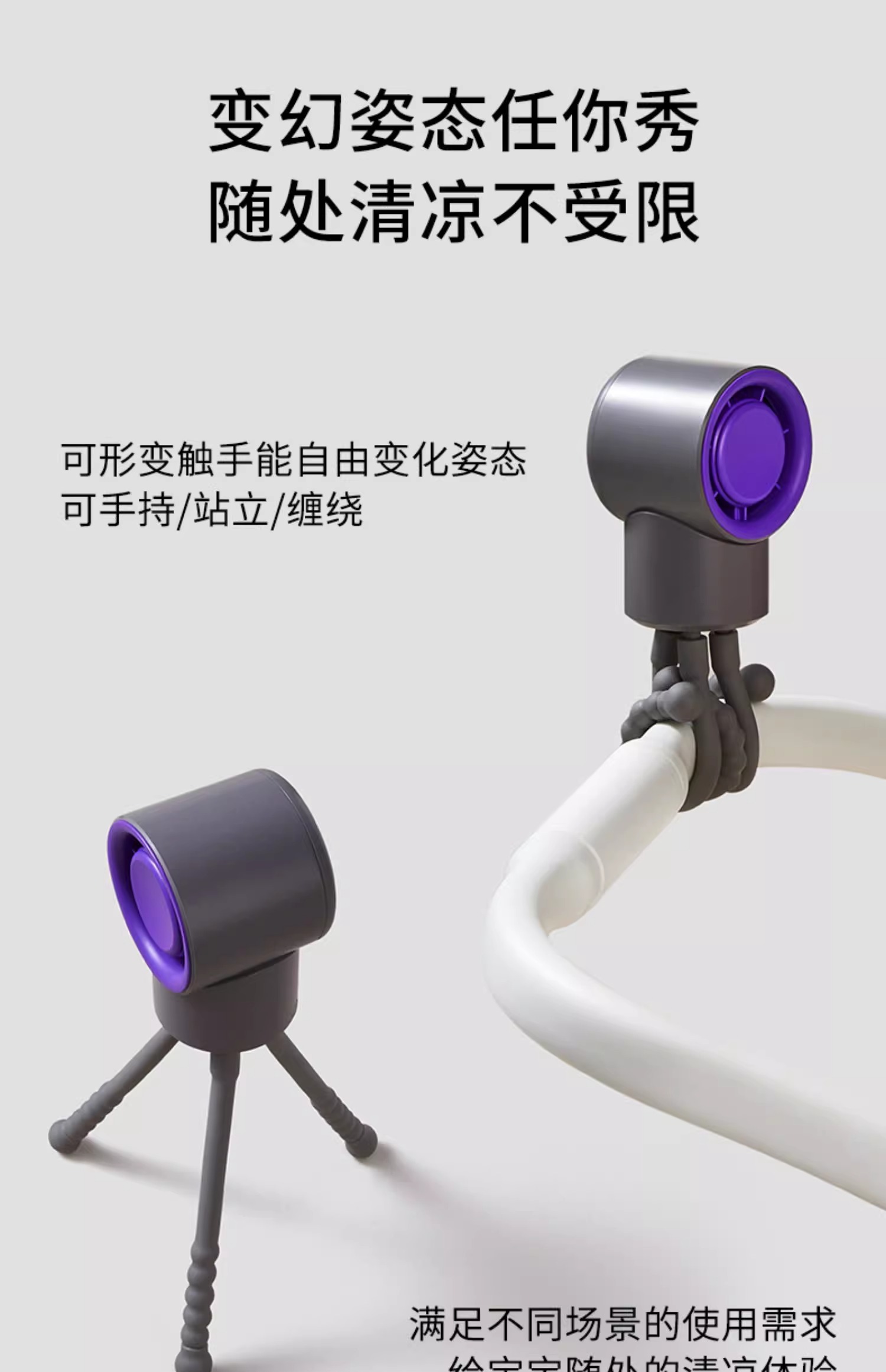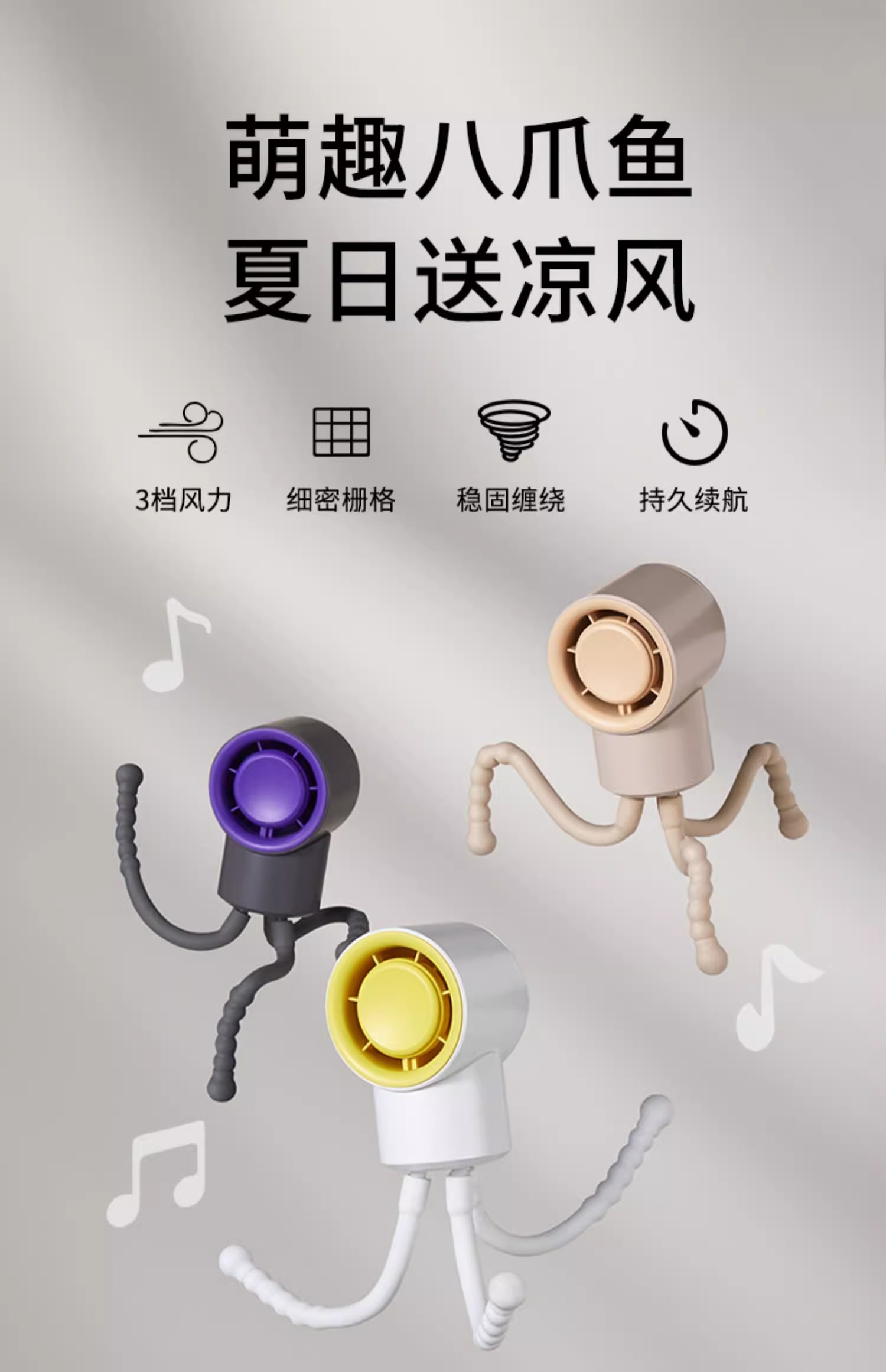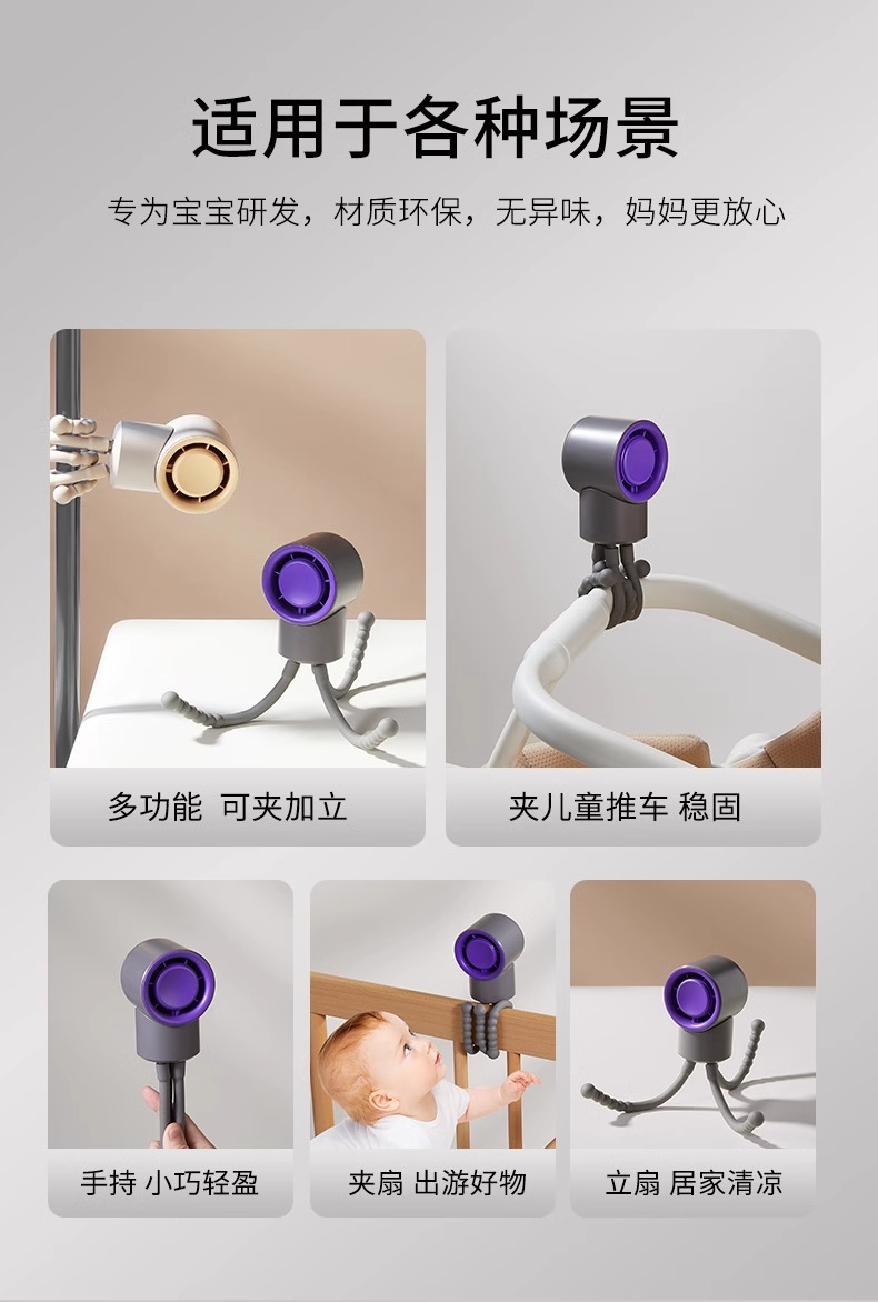科巢八爪鱼风扇轻音手持便携式婴儿车小风扇usb充电驱蚊轻音户外桌面儿童宝宝手推车婴儿床溜娃长续航