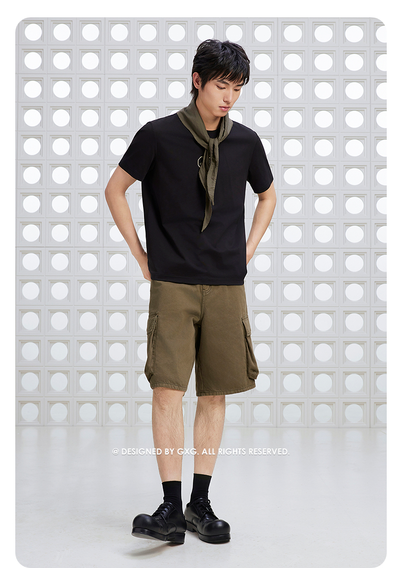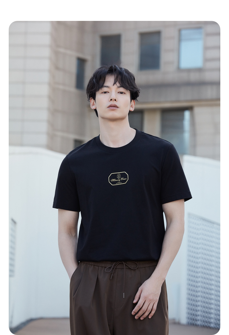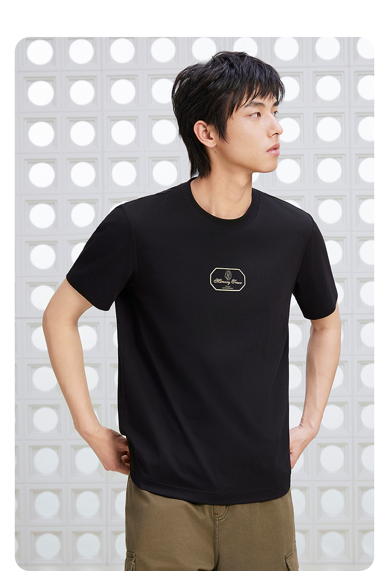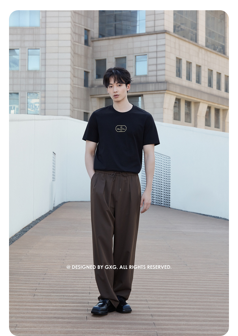 GXG男装 圆领合体T恤凉感桑蚕丝上衣商务短袖针织 2025夏季新品