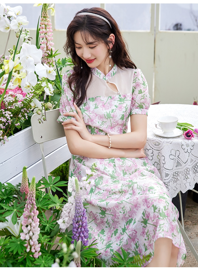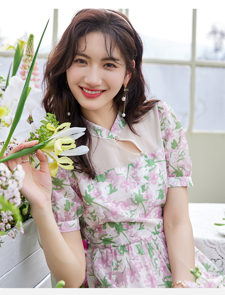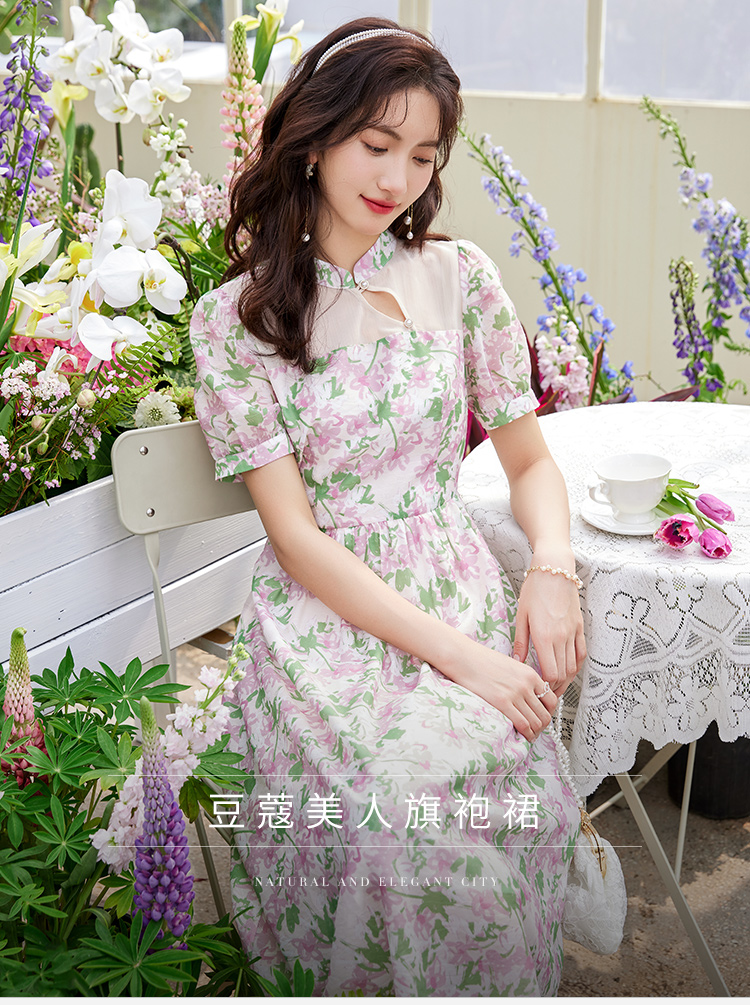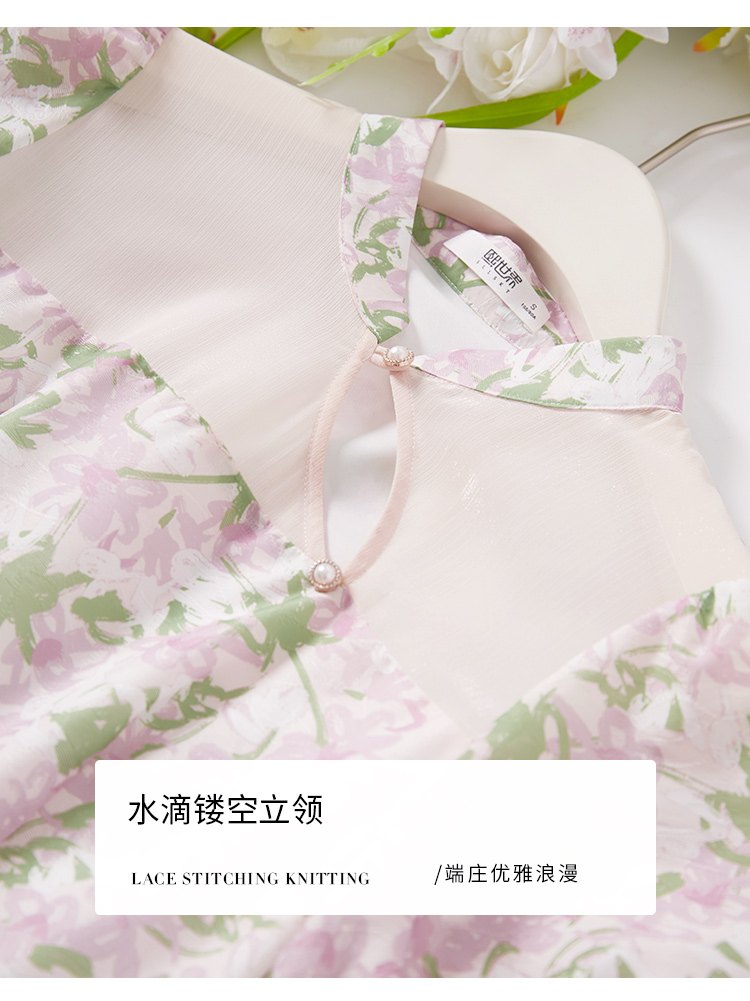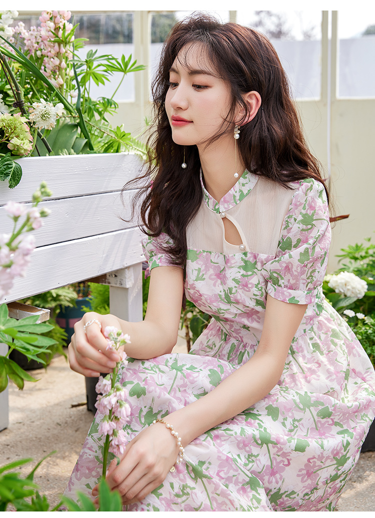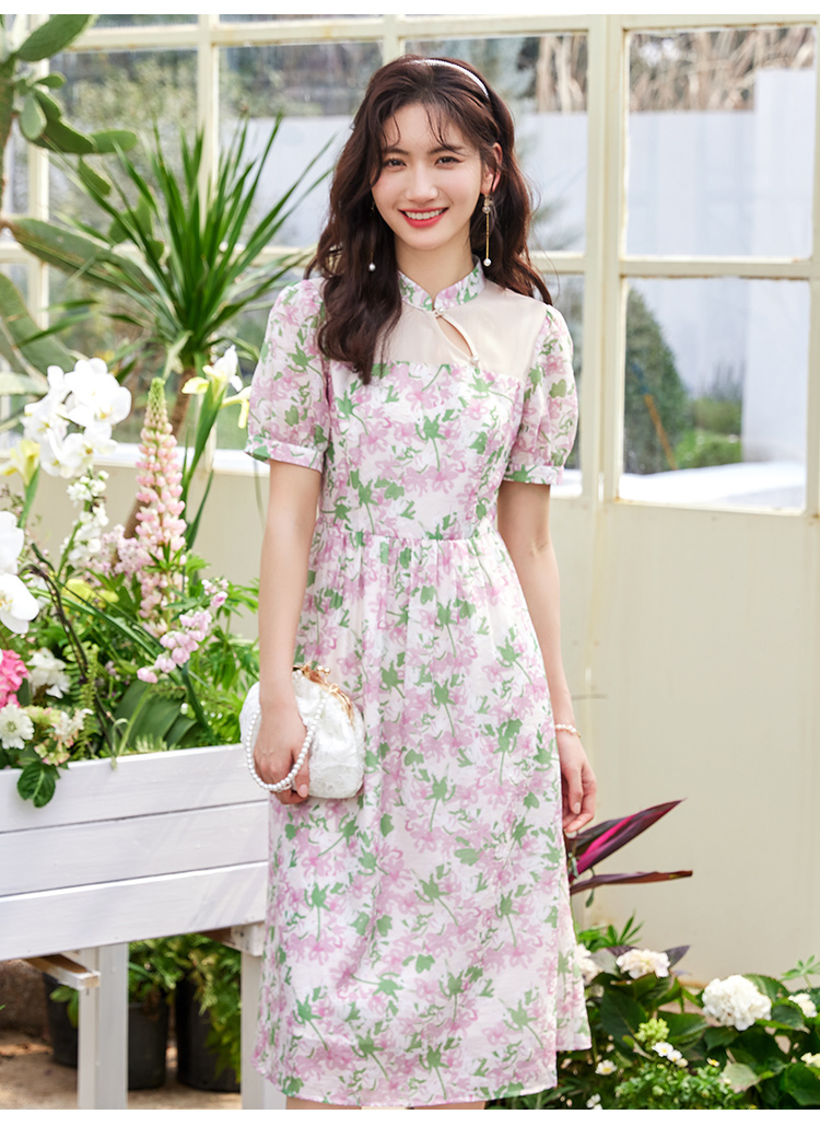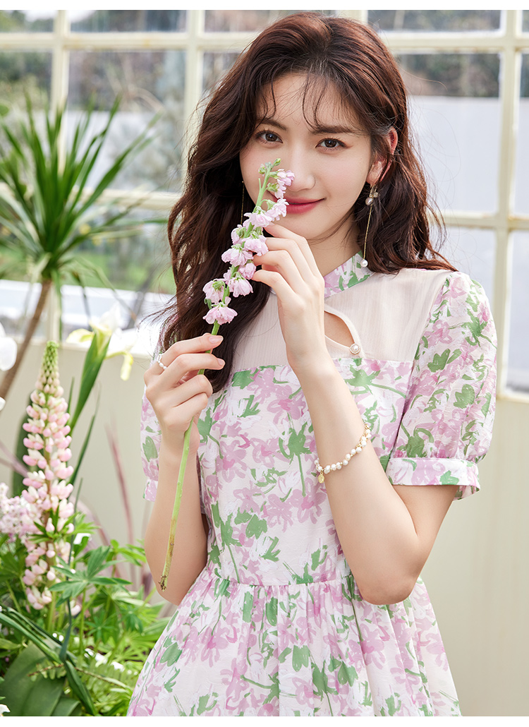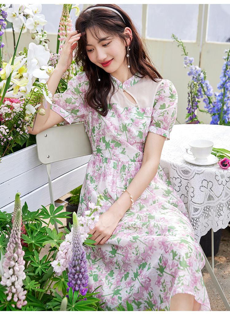 【专属特价】熙世界新中式国风改良旗袍连衣裙女夏季新款短袖复古碎花雪纺裙子