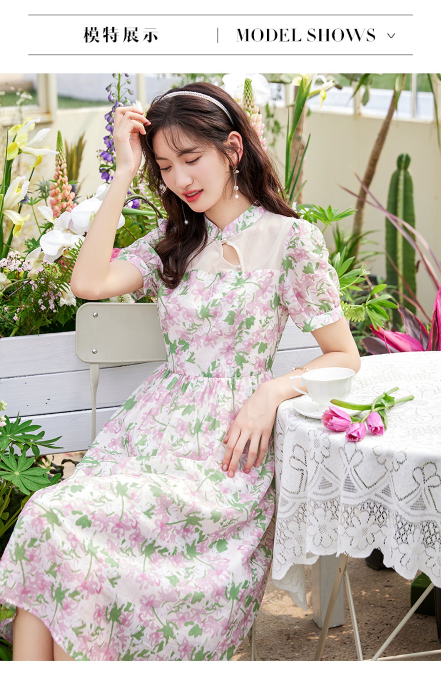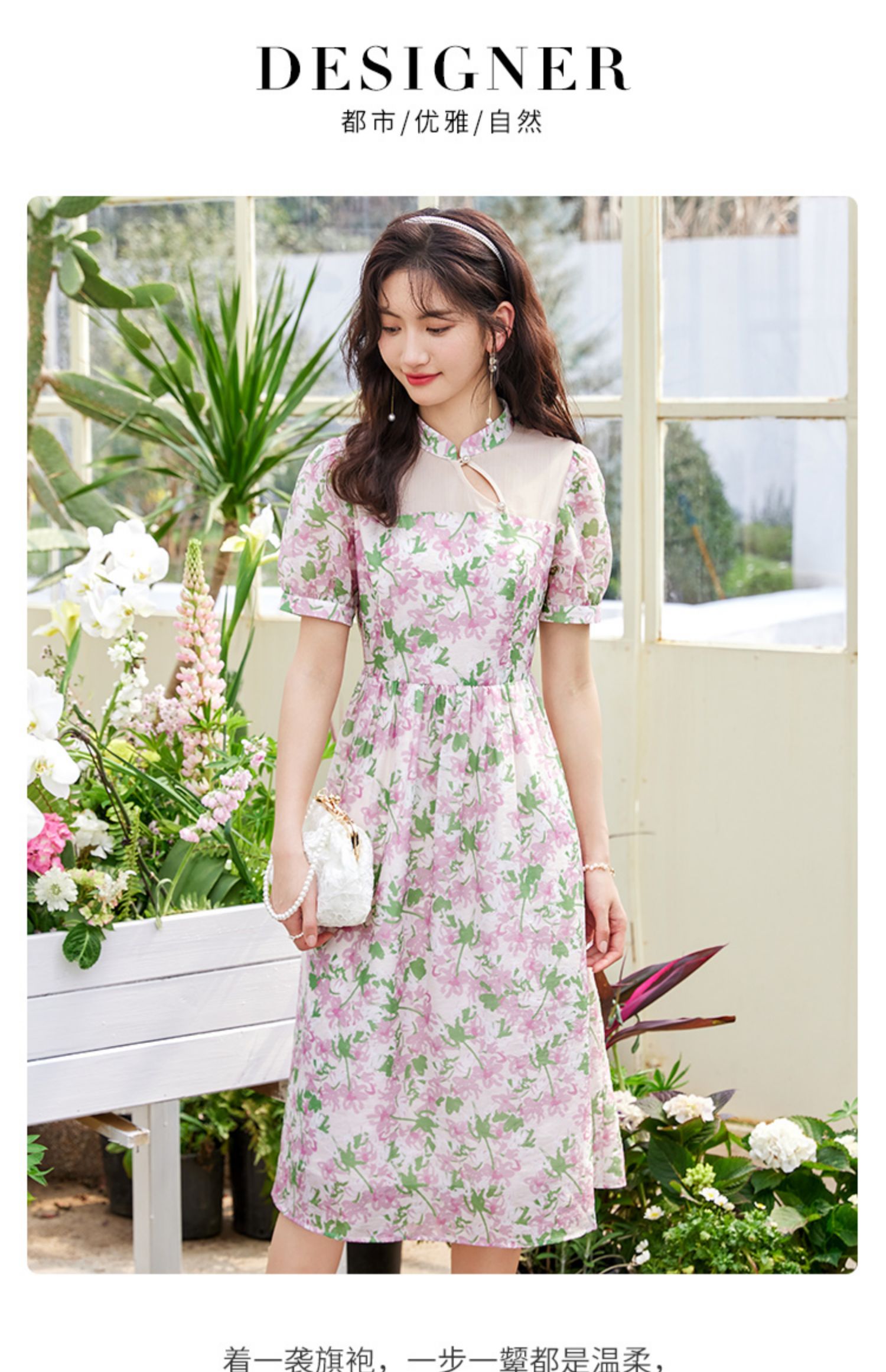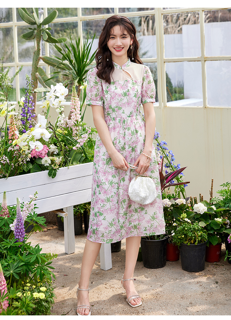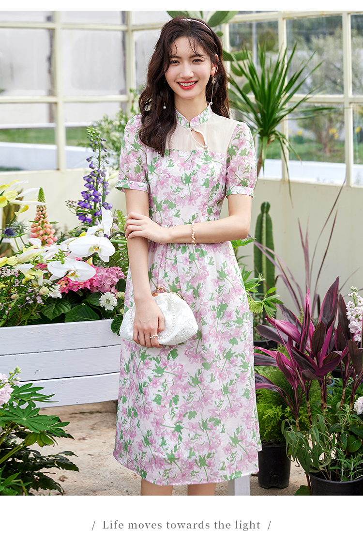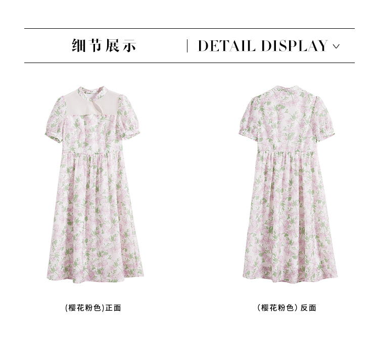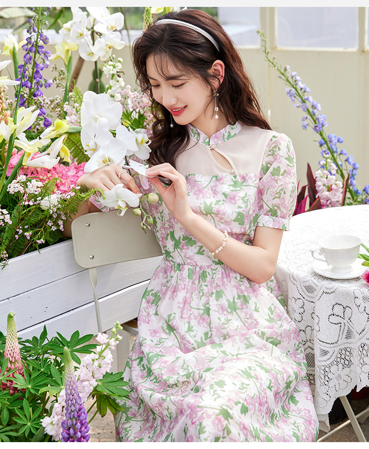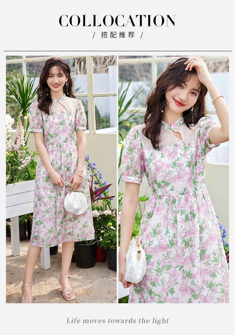 【专属特价】熙世界新中式国风改良旗袍连衣裙女夏季新款短袖复古碎花雪纺裙子