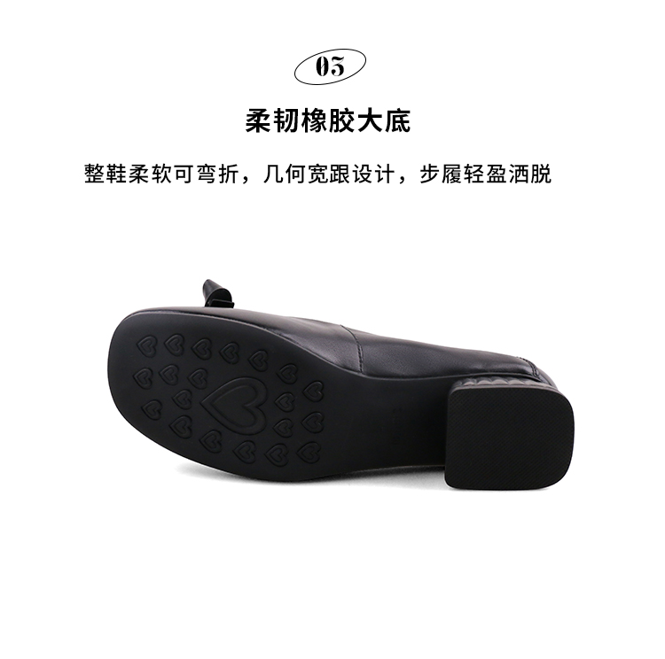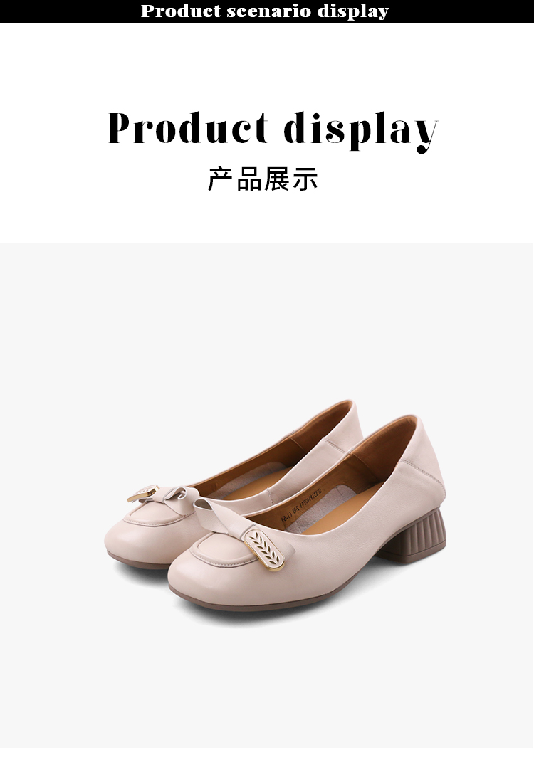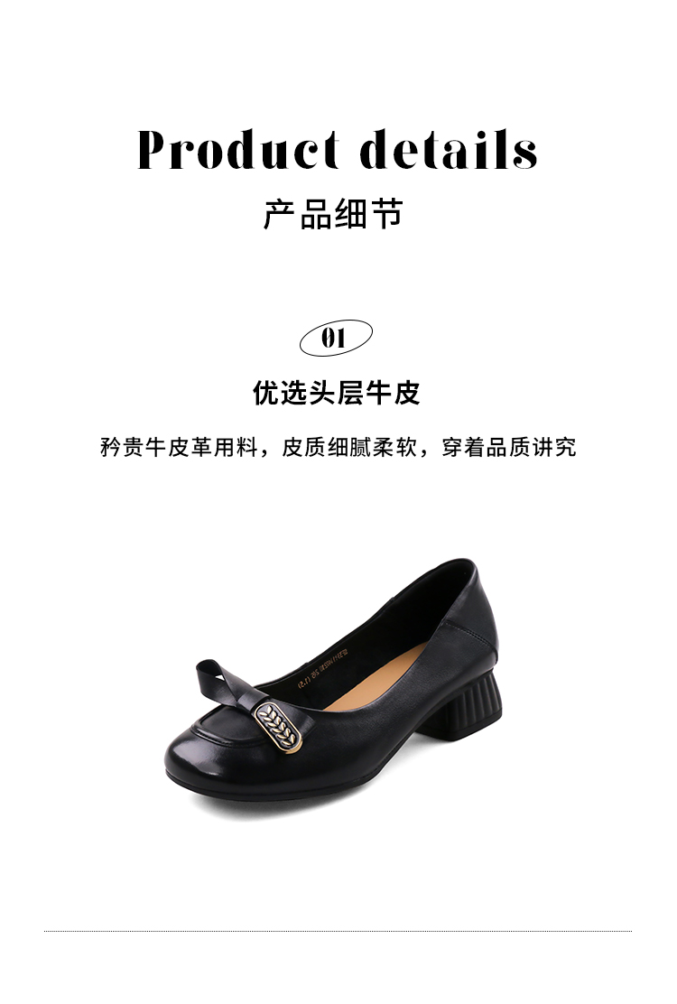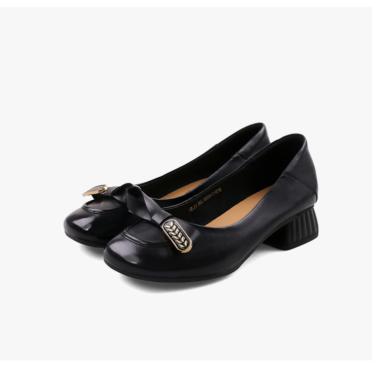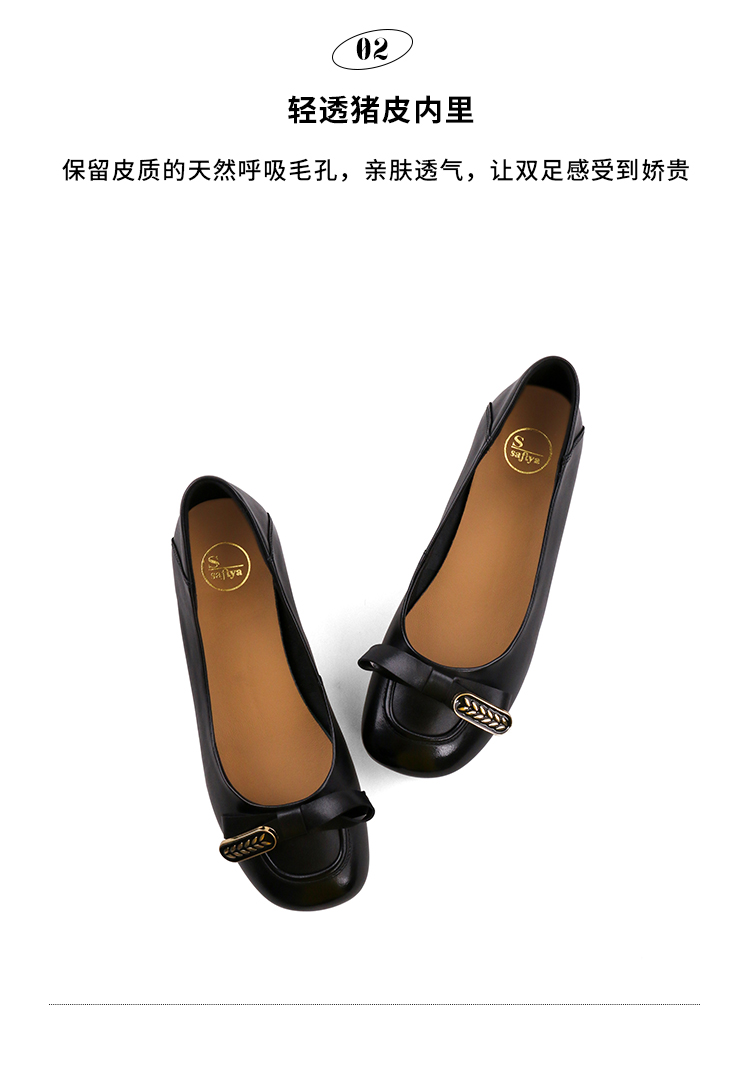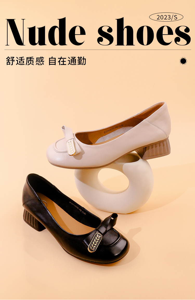 Safiya/索菲娅2023秋季新款真皮粗跟休闲麦穗蝴蝶结软底粗跟浅口单鞋SF33111402
