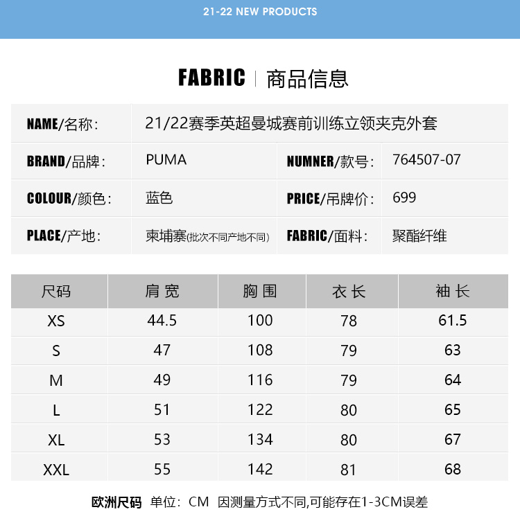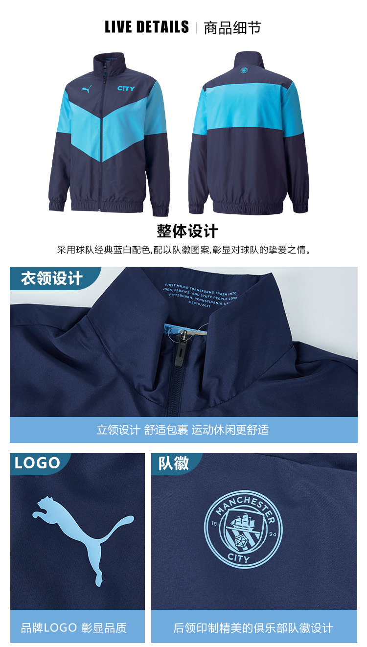 SFS彪马正品PUMA曼城休闲运动外套赛前热身拉链夹克 764507-07