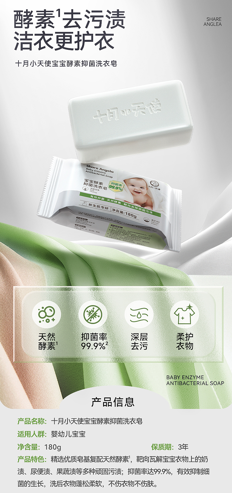 十月小天使 酵素抑菌 洗衣皂 180g