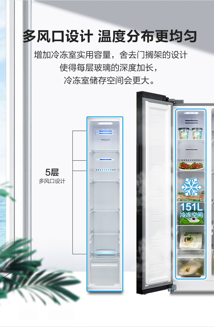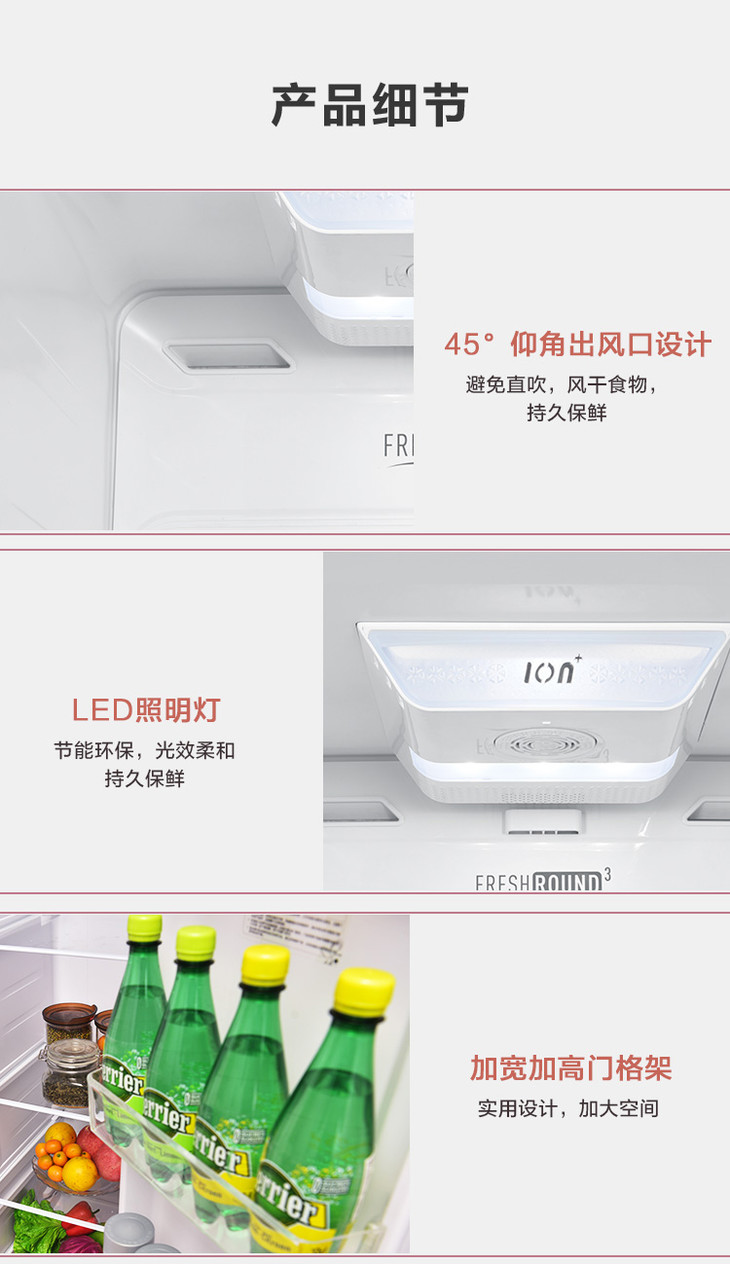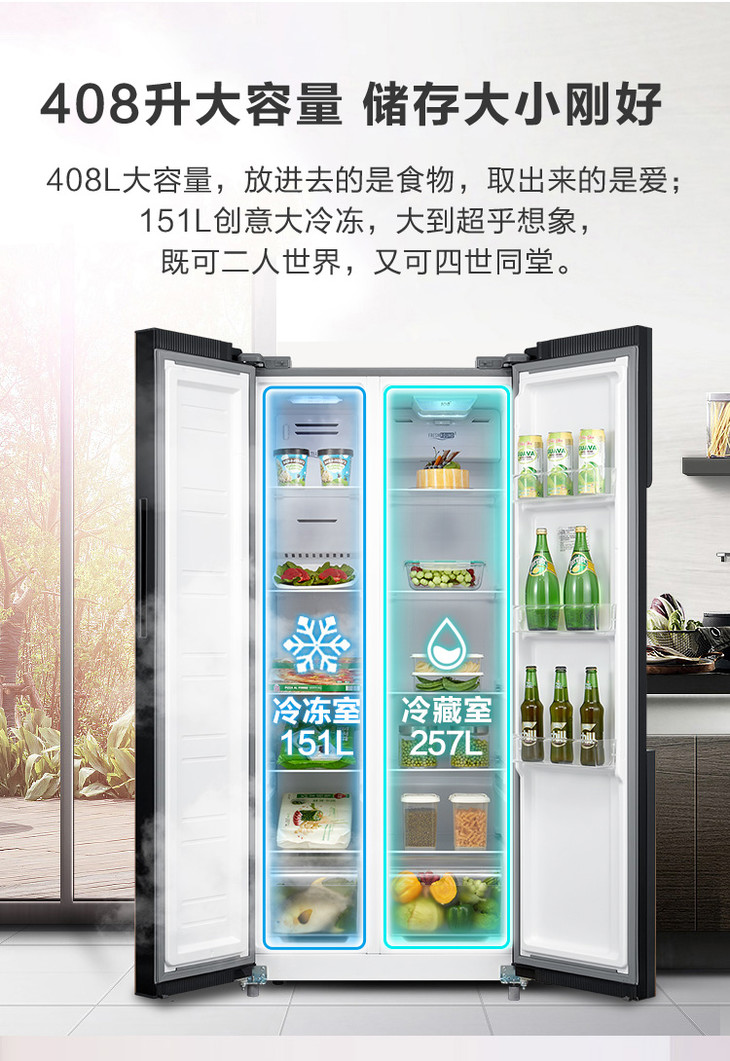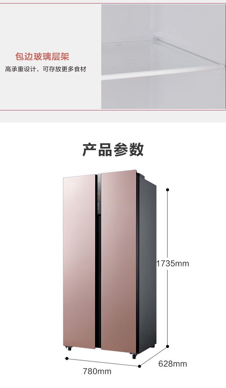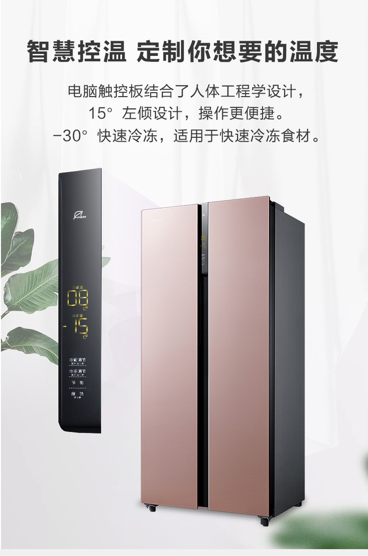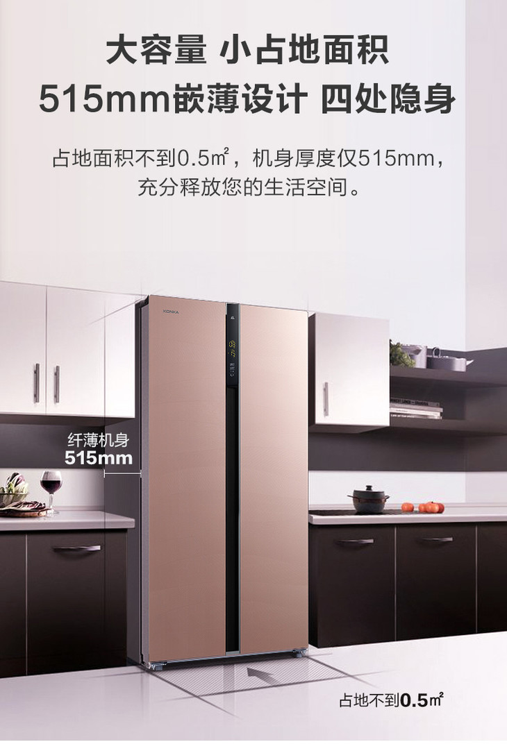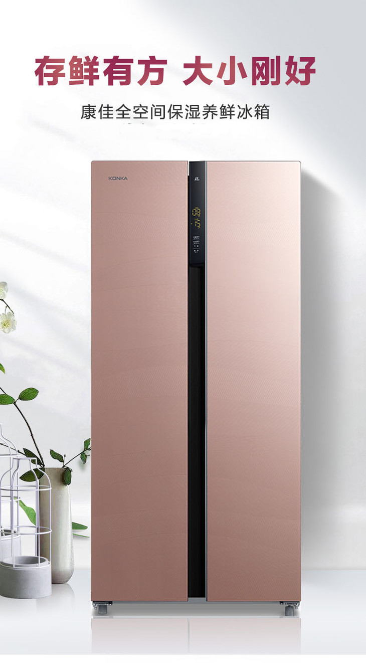 康佳 冰箱 BCD-408WD5EBXP 408升对开门冰箱 风冷无霜 变频 超薄机身 隐藏式把手 玫瑰金