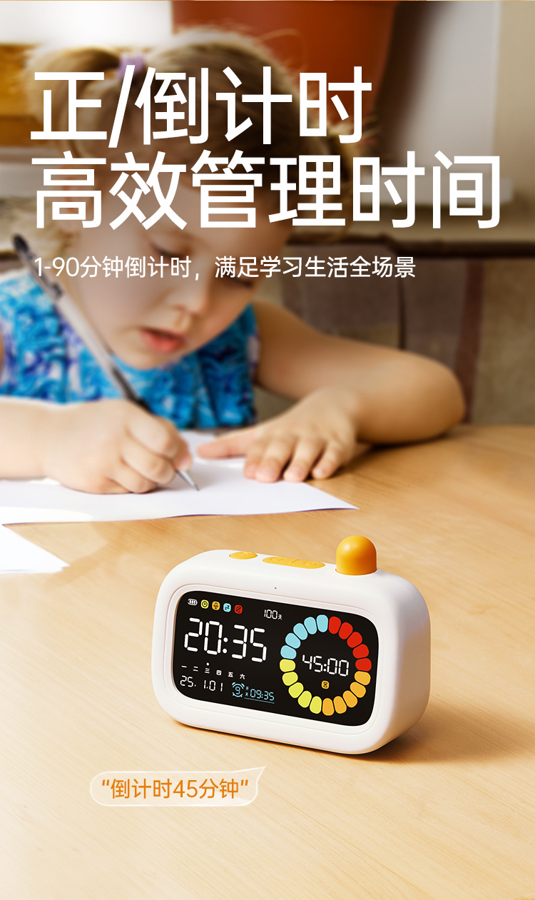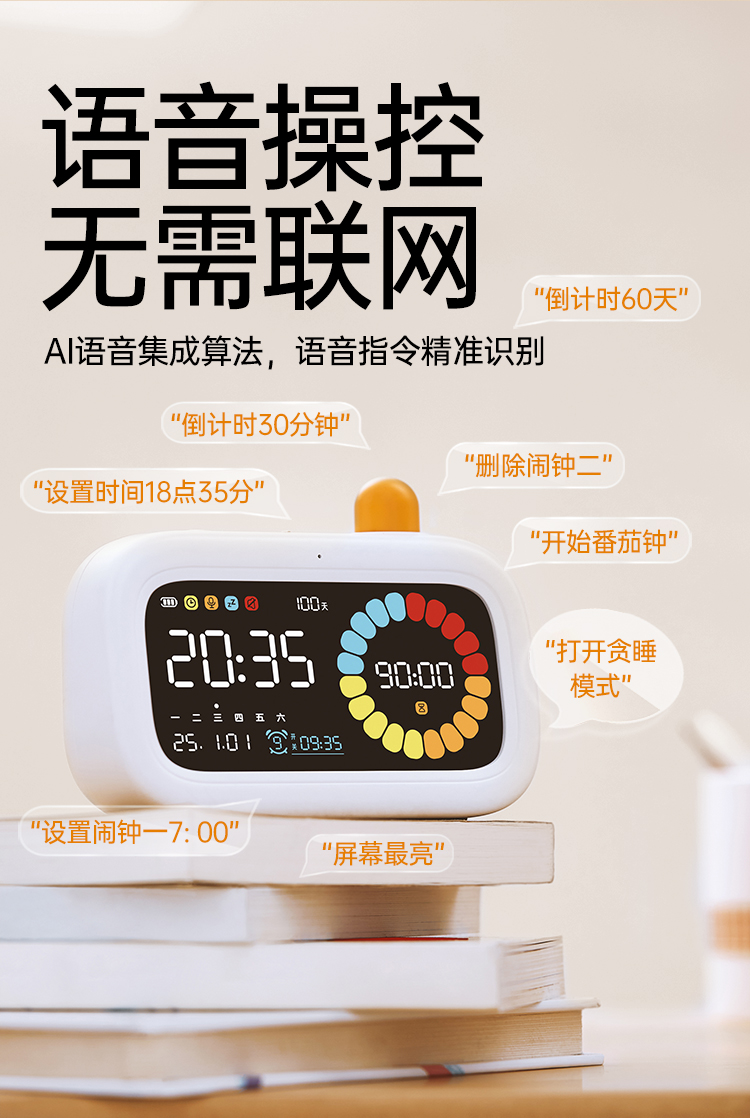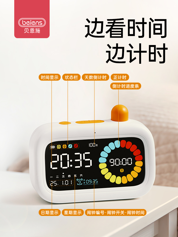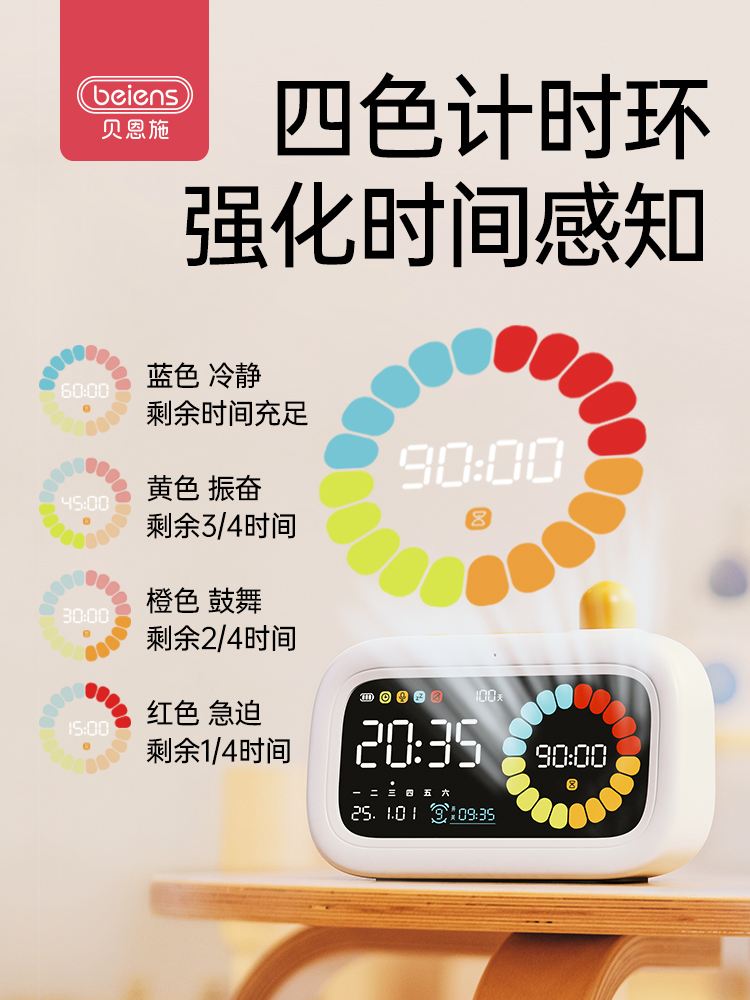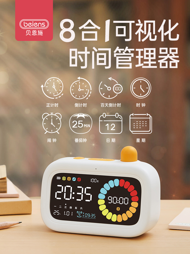 贝恩施智能语音闹钟学习计时器学生自律可视化时间管理静音番茄钟