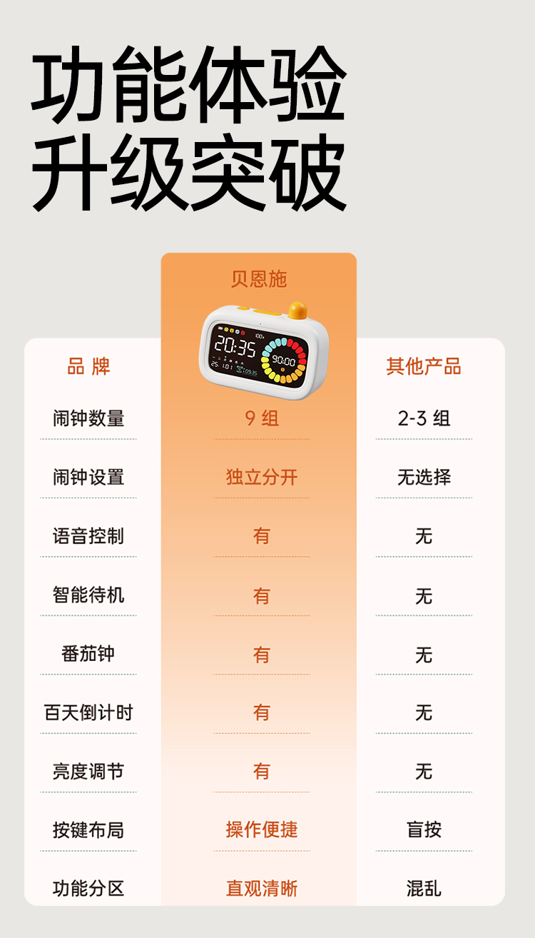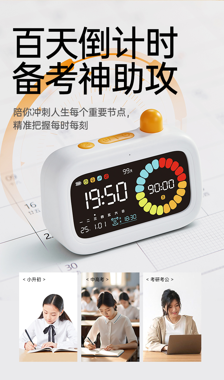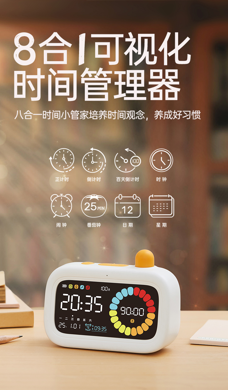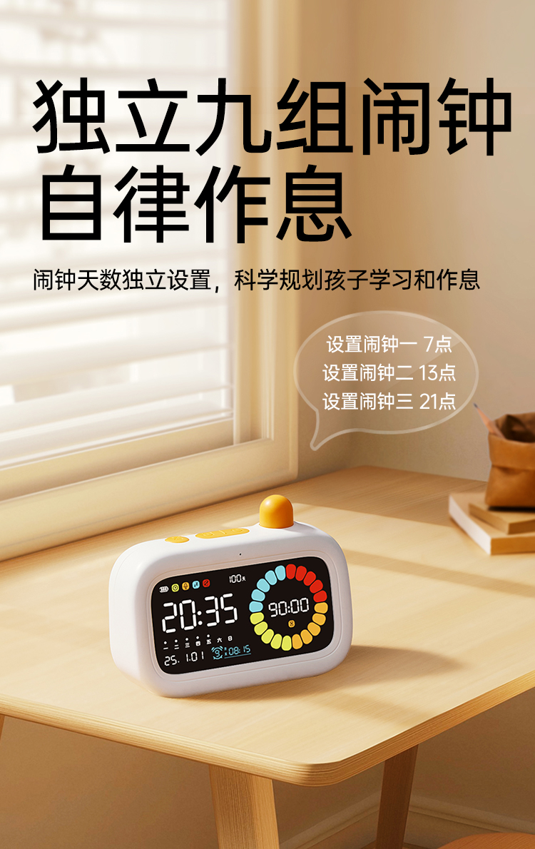 贝恩施智能语音闹钟学习计时器学生自律可视化时间管理静音番茄钟