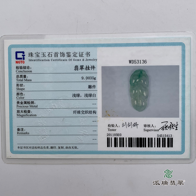派瑞翡翠 翡翠挂件 糯种 淡绿色