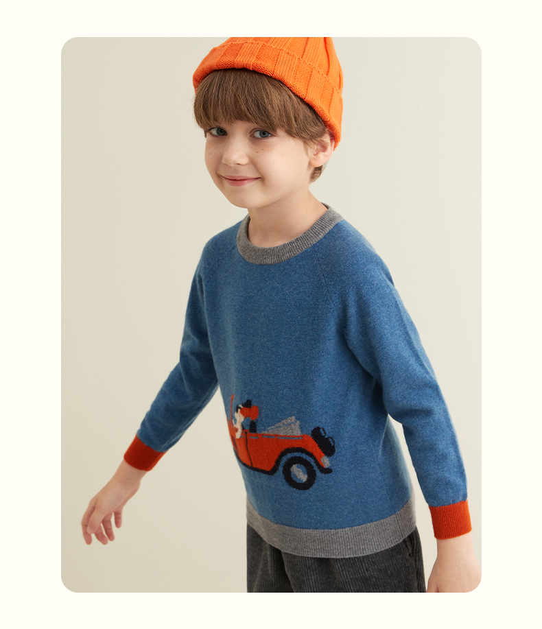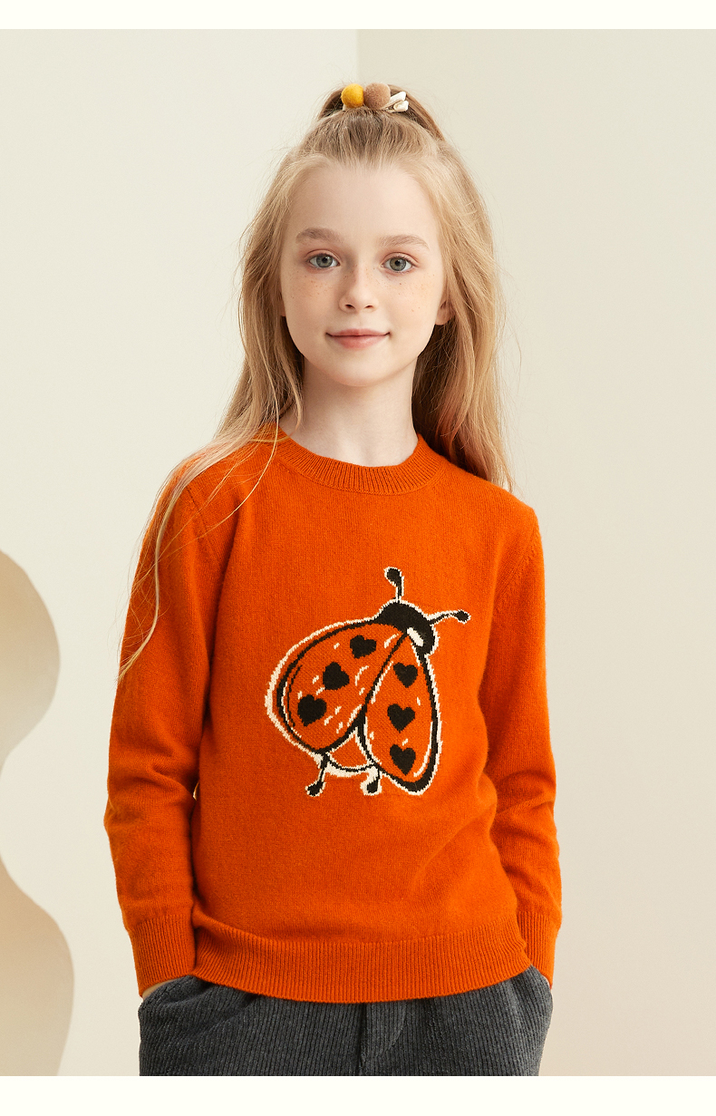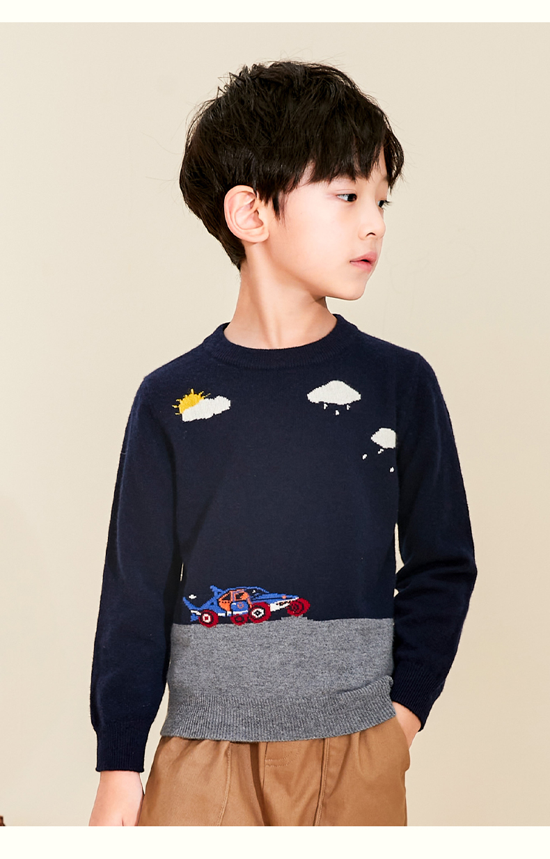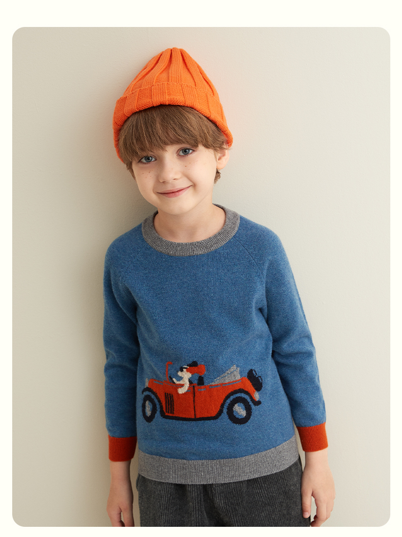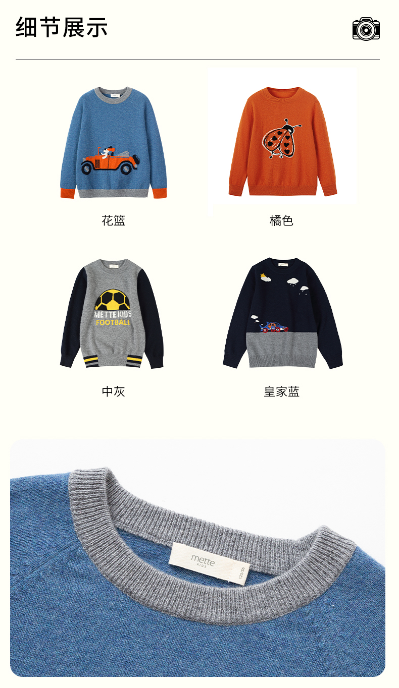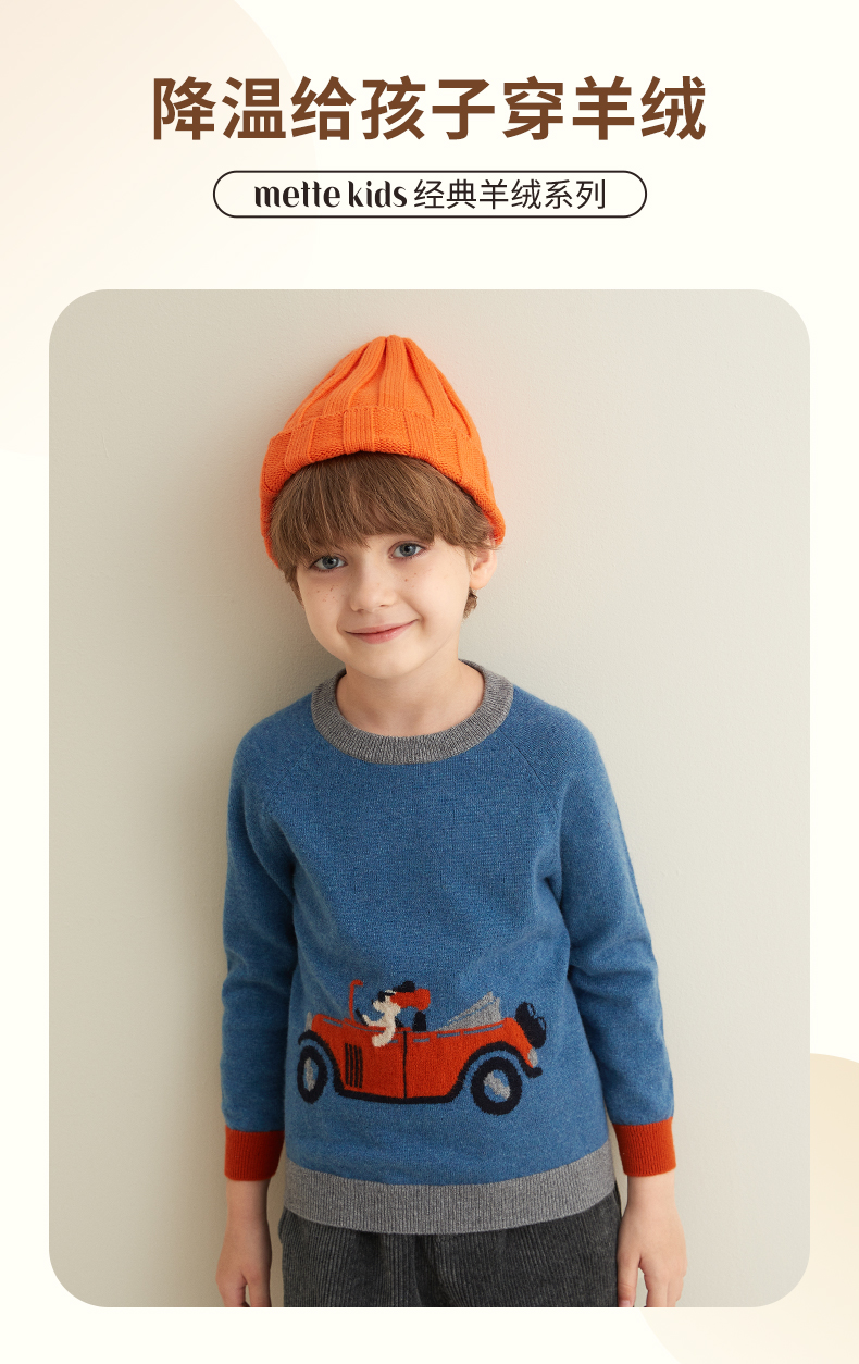 mettekids儿童纯羊绒衫春秋打底小童男童针织衫女童卡通薄款毛衣