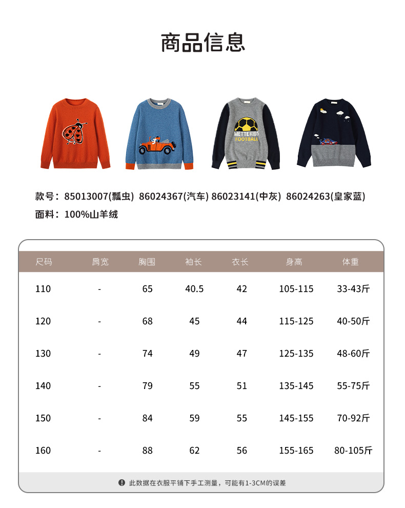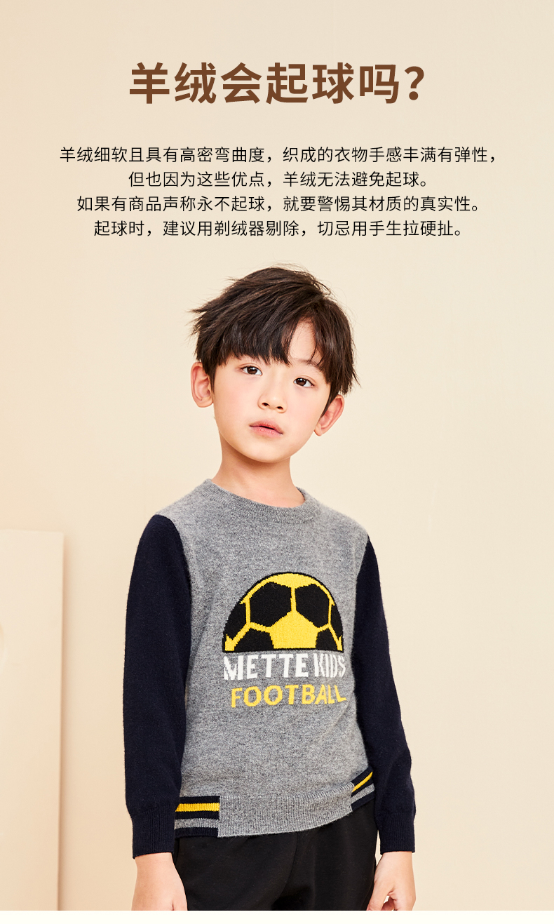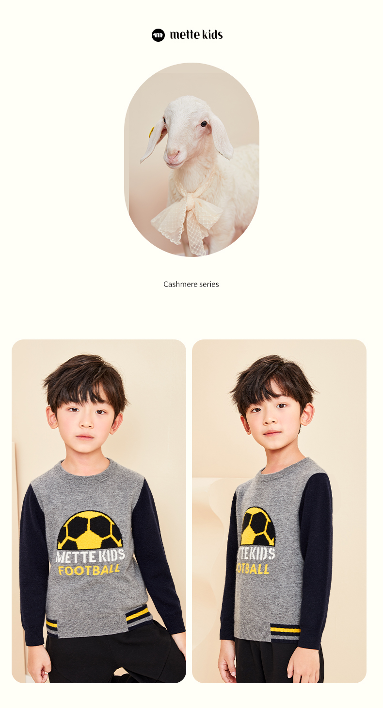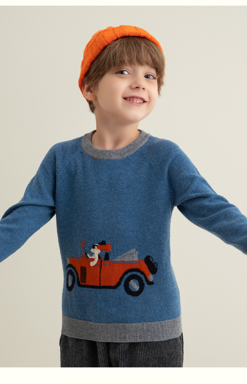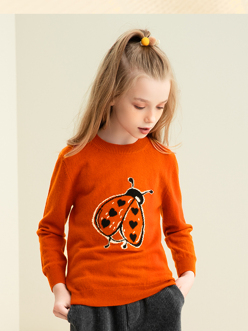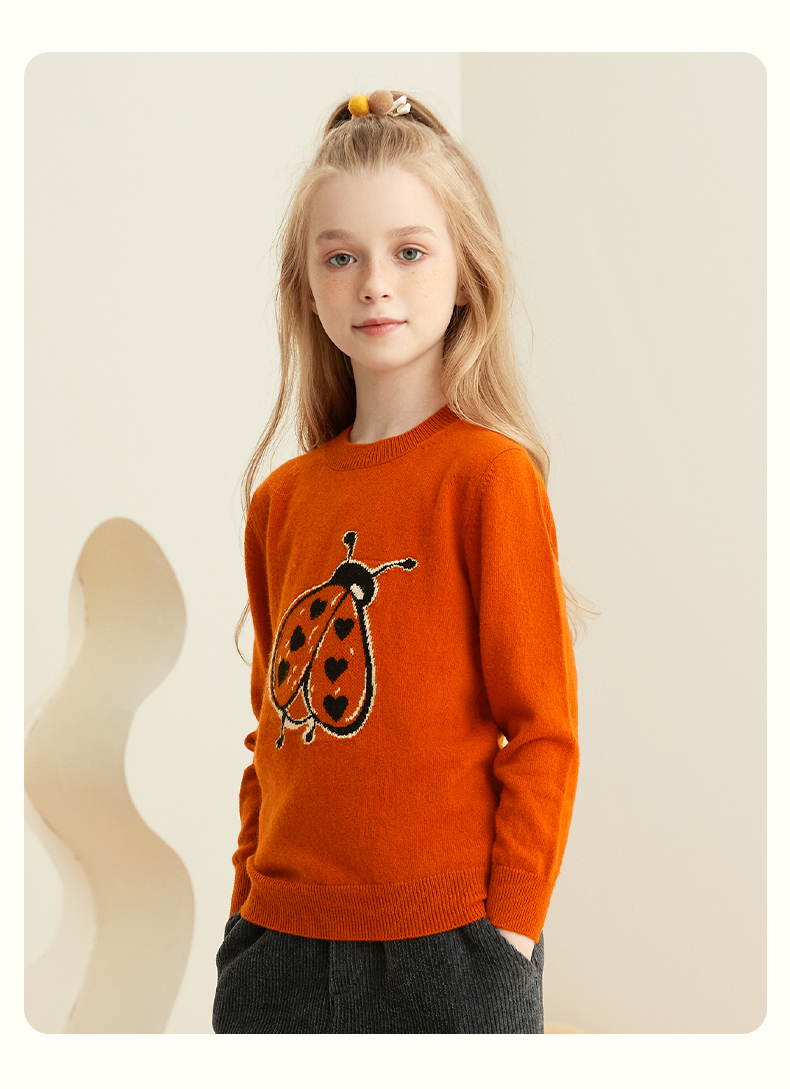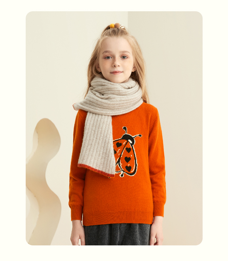 mettekids儿童纯羊绒衫春秋打底小童男童针织衫女童卡通薄款毛衣