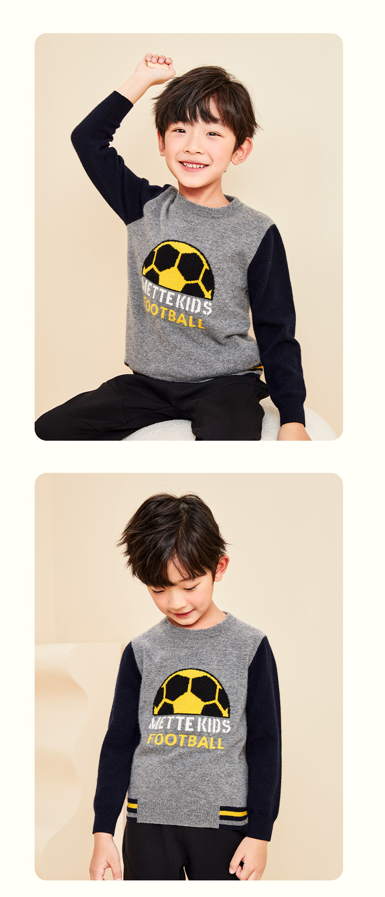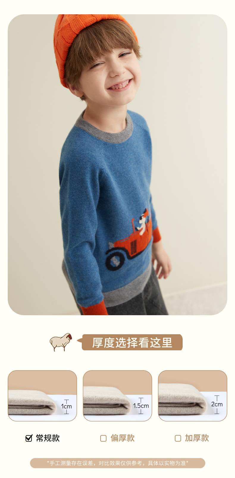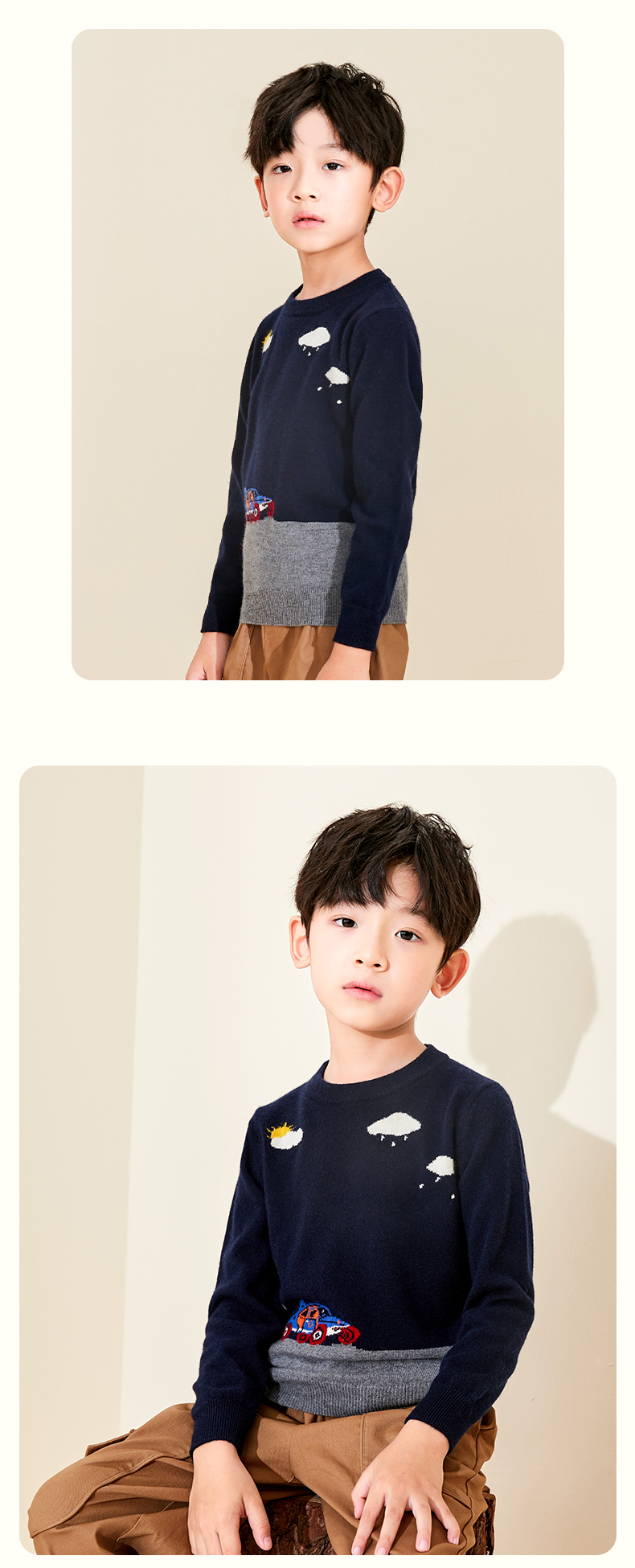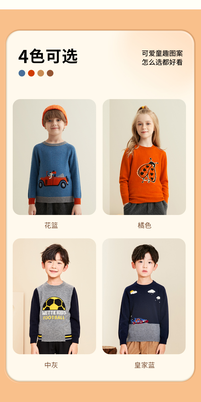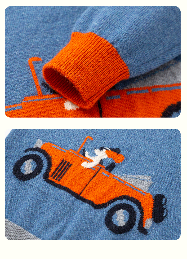 mettekids儿童纯羊绒衫春秋打底小童男童针织衫女童卡通薄款毛衣