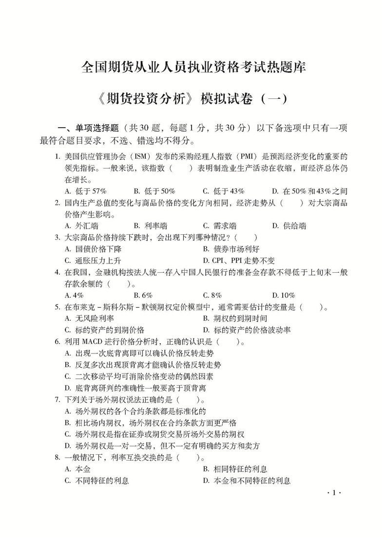 全国期货从业人员执业资格考试热题库——期货投资分析