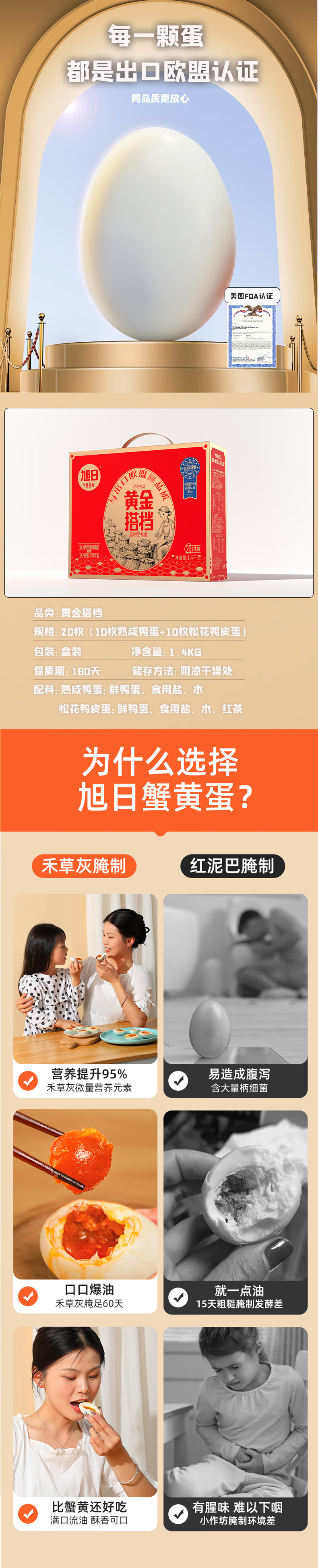 旭日1996黄金搭档熟咸鸭蛋松花鸭皮蛋组合礼盒20枚1.4KG