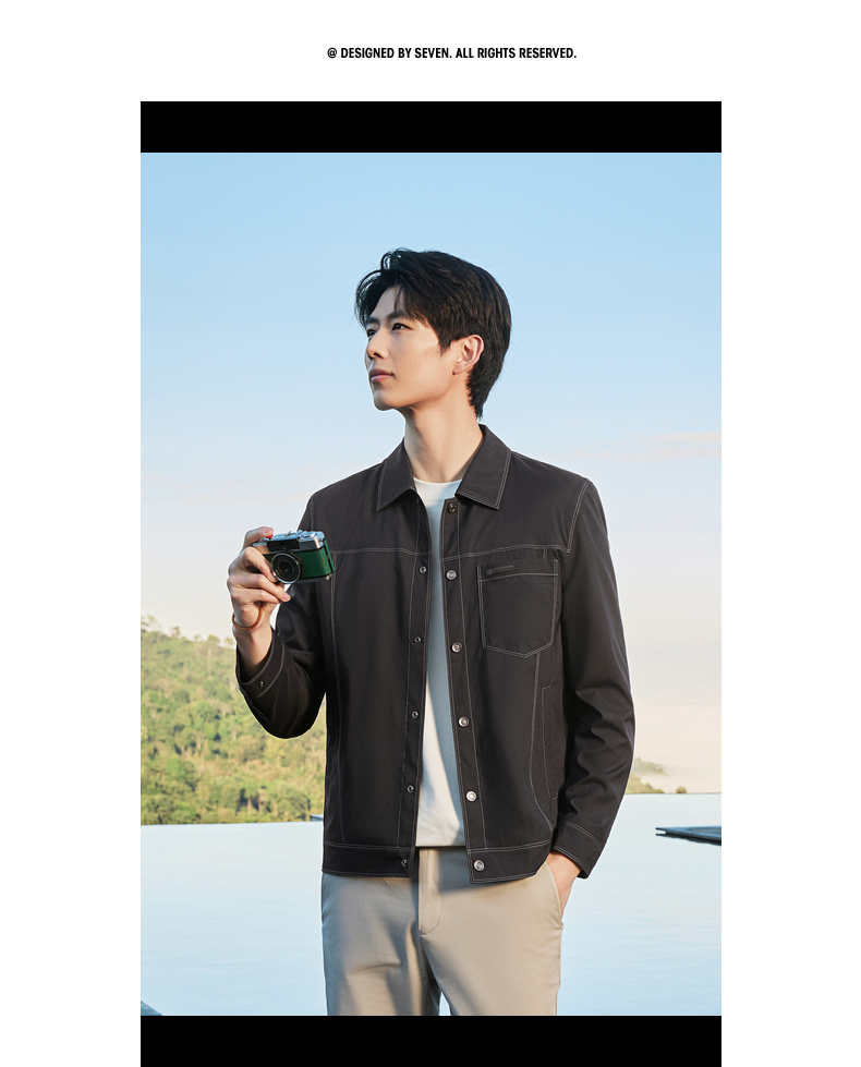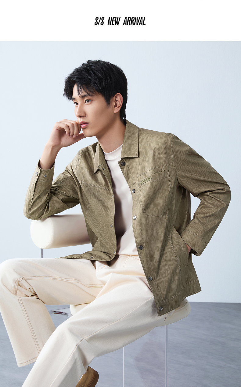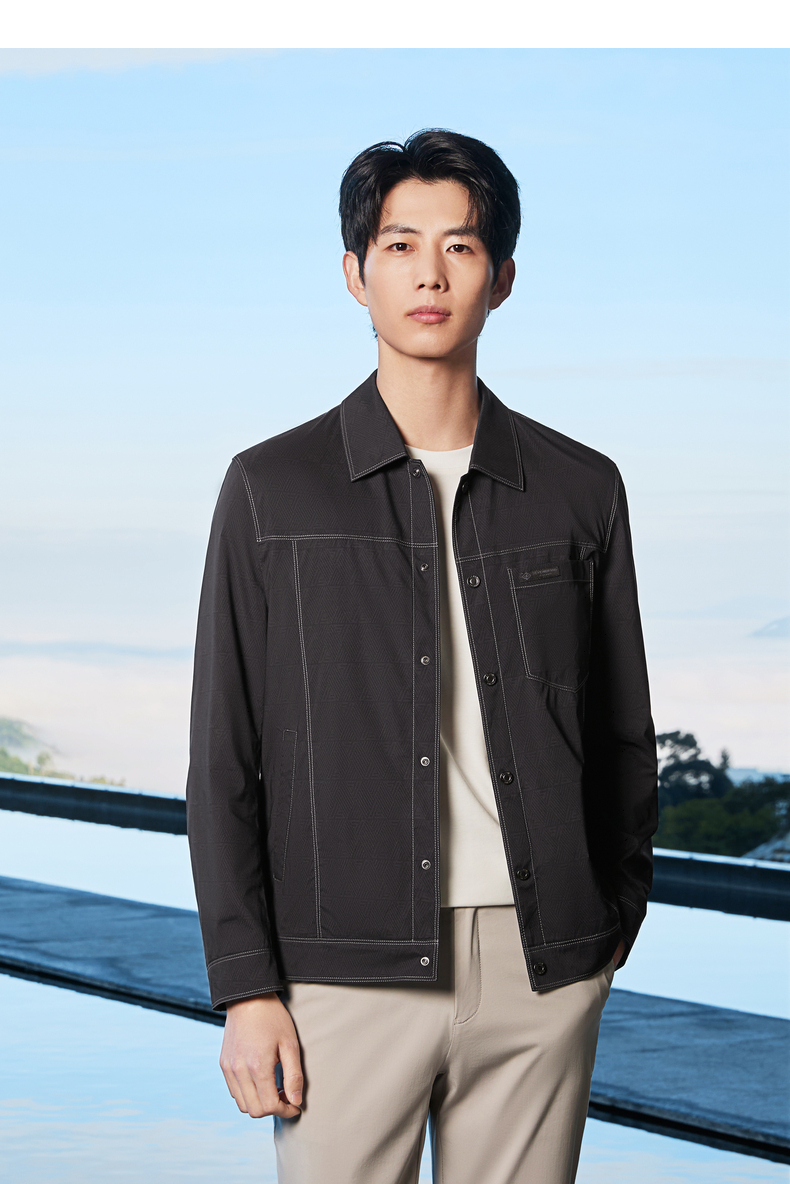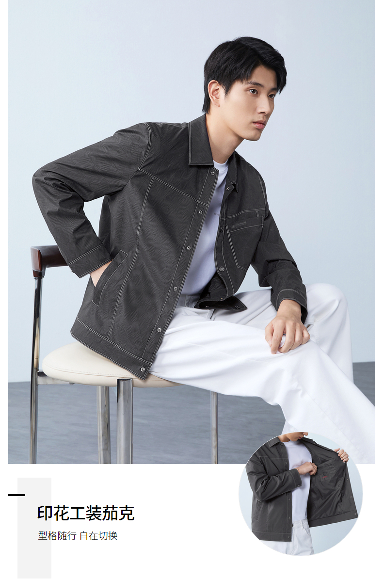 【印花工装茄克】柒牌男装2026春季新款几何印花翻领休闲商务夹克 130K70150