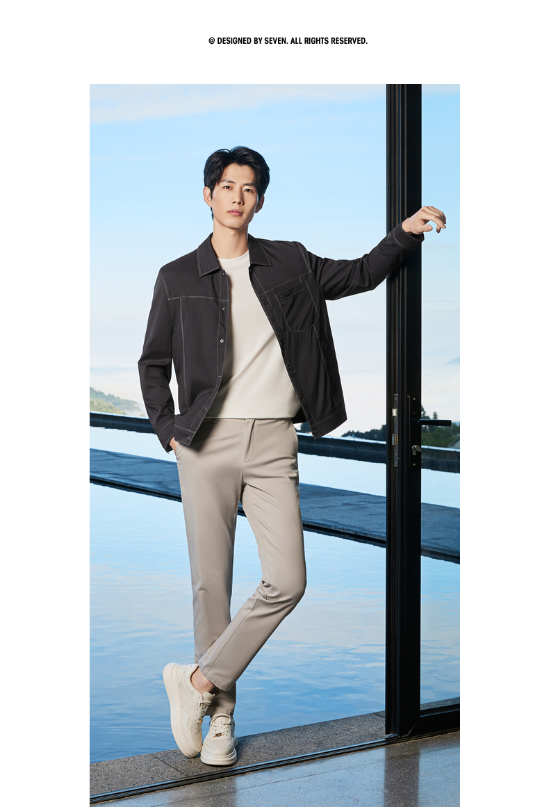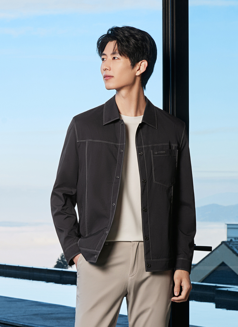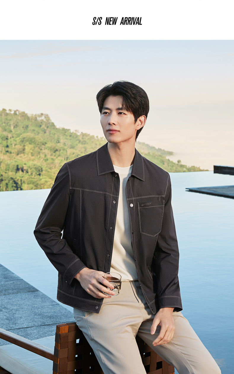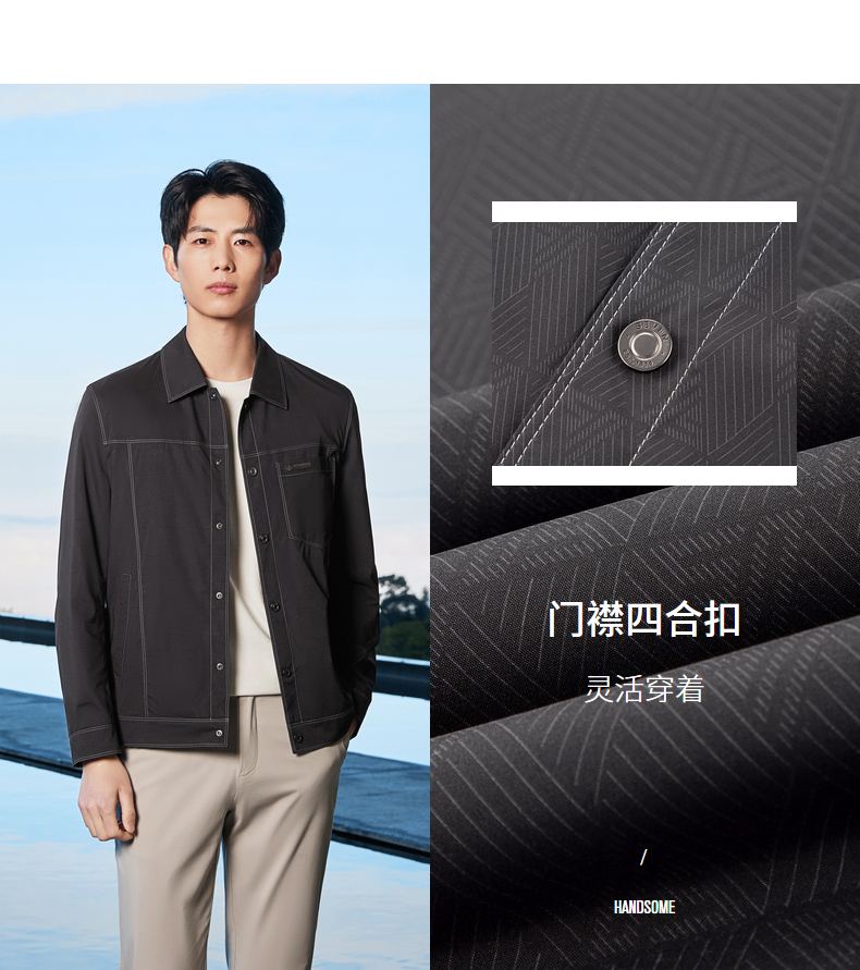 【印花工装茄克】柒牌男装2026春季新款几何印花翻领休闲商务夹克 130K70150
