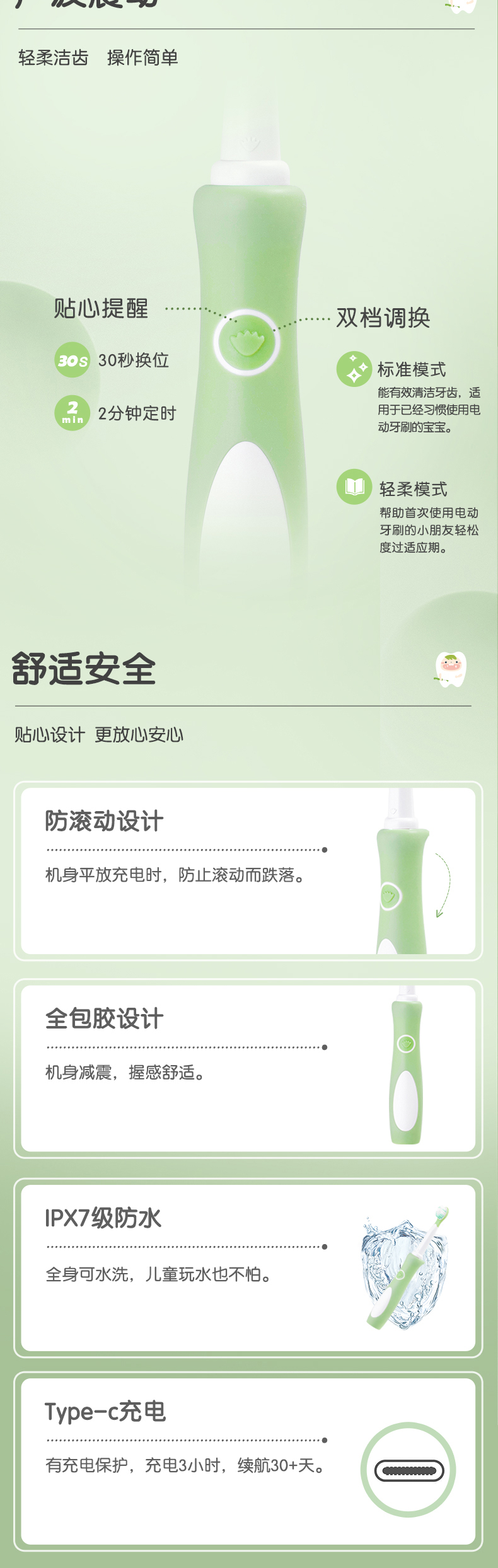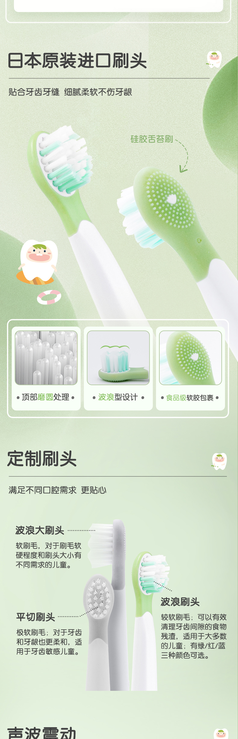 Yucca成长型儿童电动声波震动牙刷&刷头 适用3岁-12岁