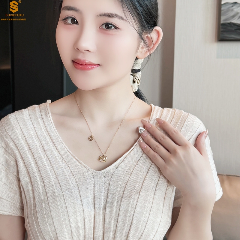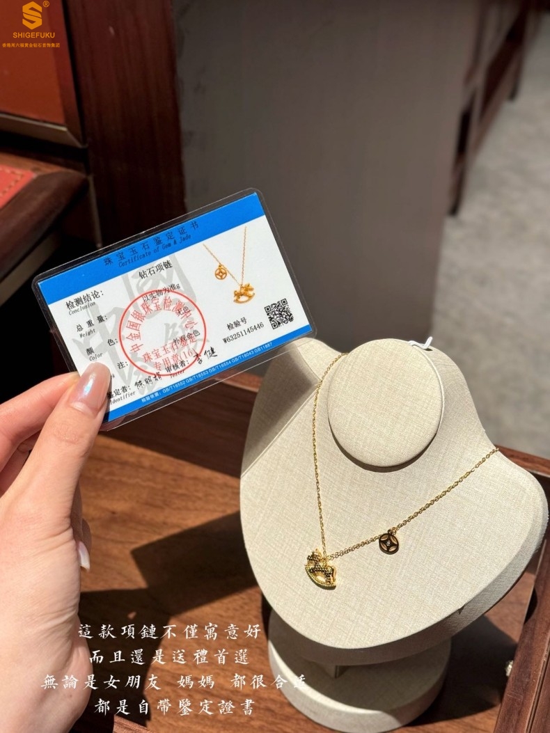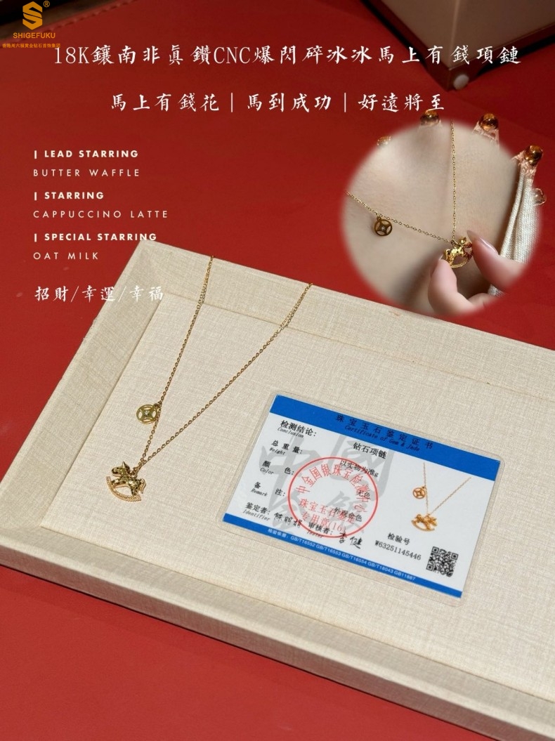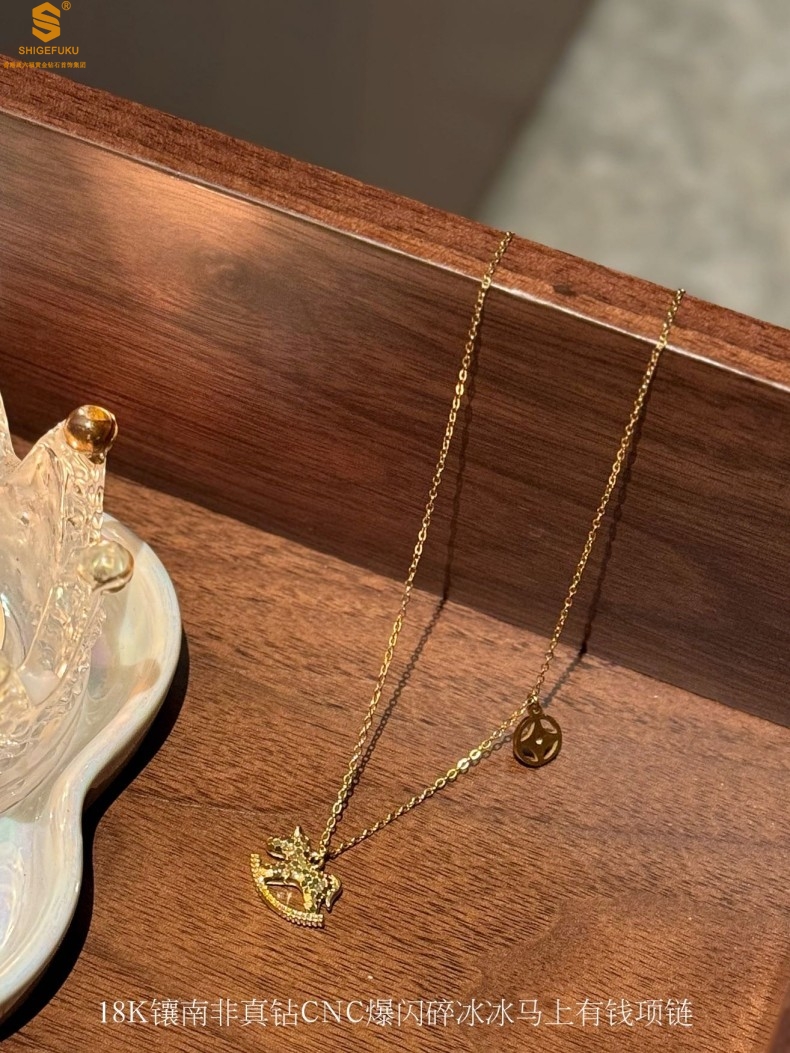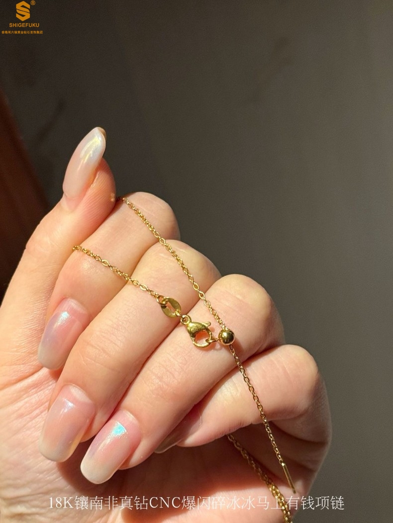 香港周六福黄金钻石首饰18K镶南非真钻CNC爆闪碎冰冰马上有钱项链