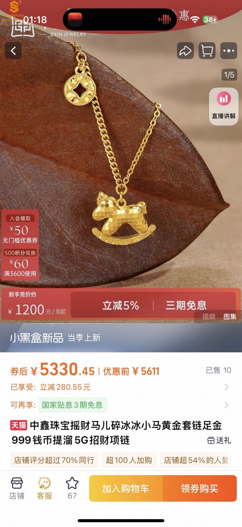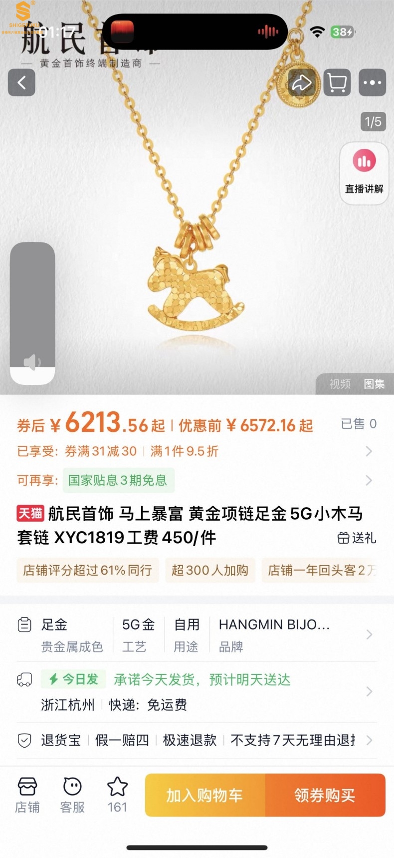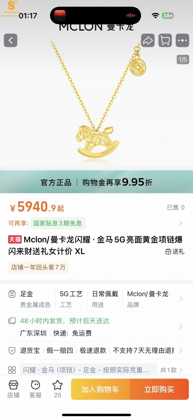 香港周六福黄金钻石首饰18K镶南非真钻CNC爆闪碎冰冰马上有钱项链