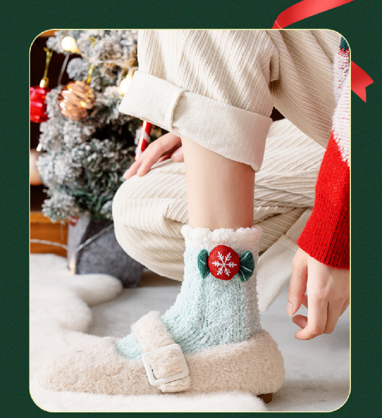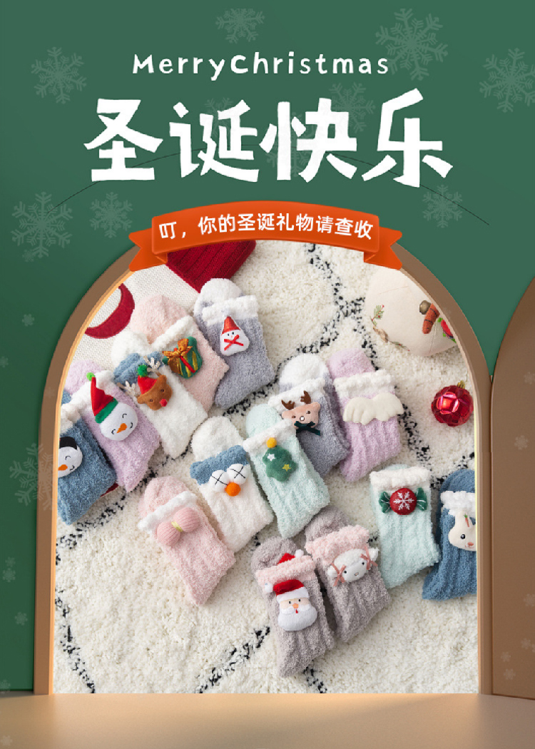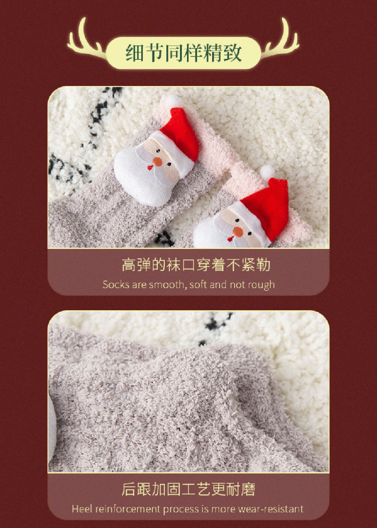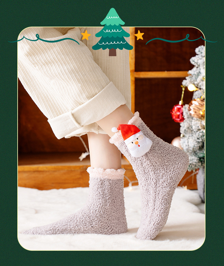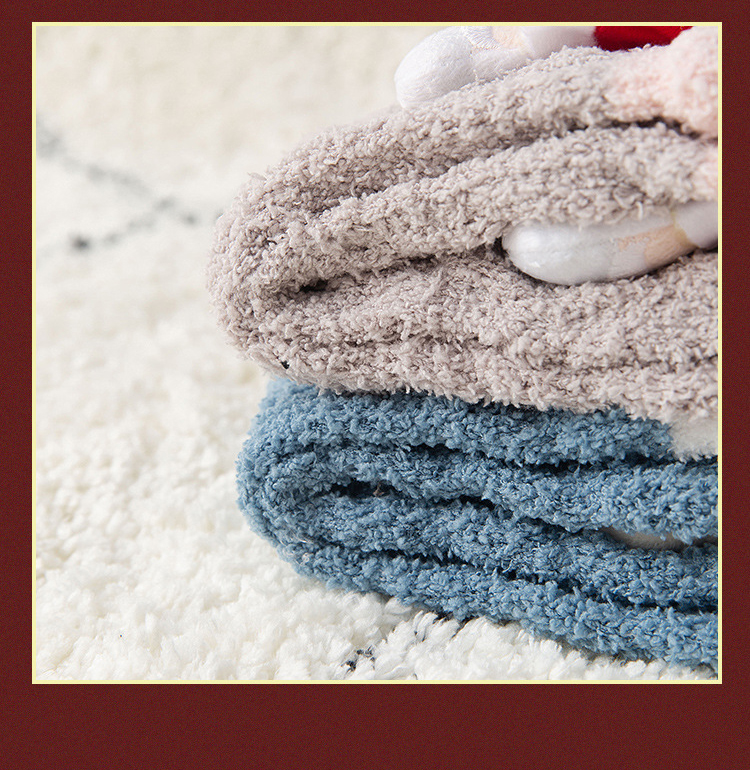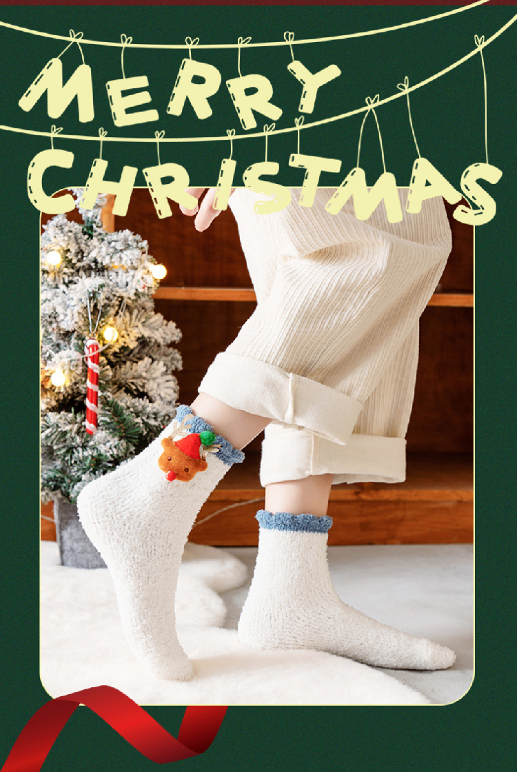 【圣诞礼物】秋冬3双加厚珊瑚绒立体公仔袜 可爱卡通中筒袜圣诞袜居家地板袜