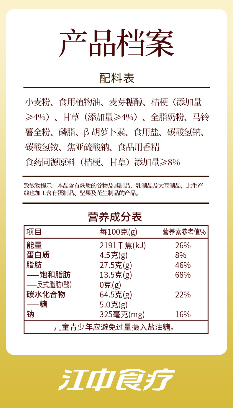 【桔梗甘草】江中食疗桔梗甘草薄脆饼干96g 生产日期2025年12月,保质期12个月