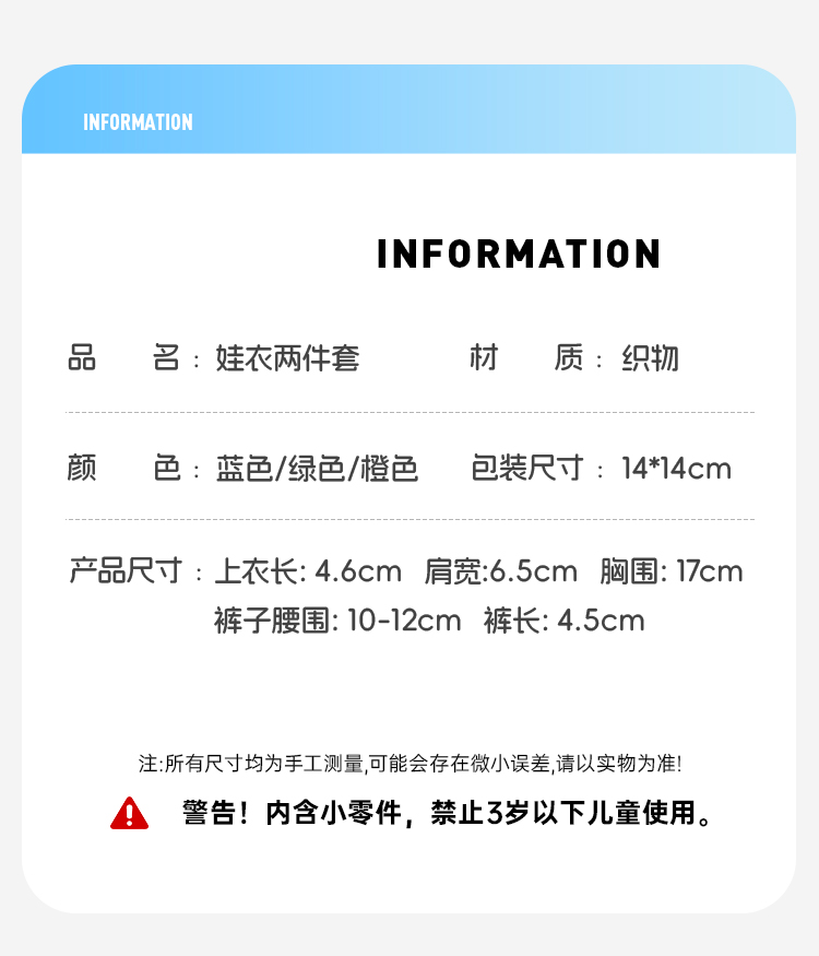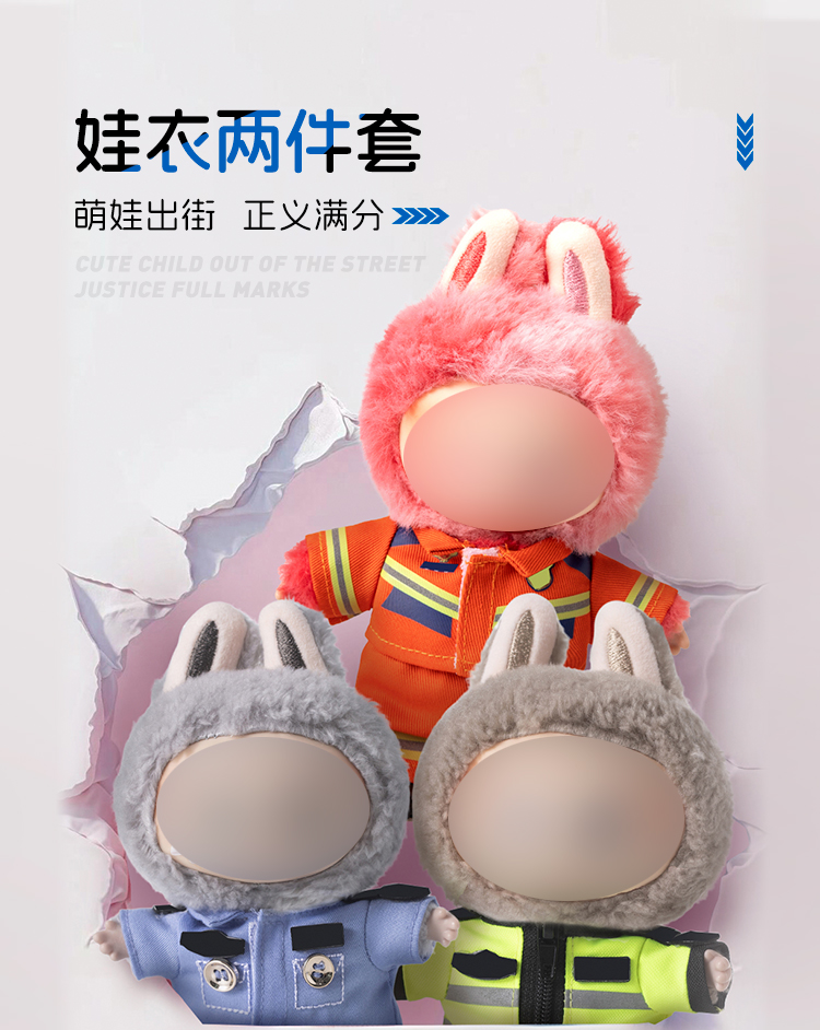 【实付满199送钥匙扣】【娃衣两件套】17cm拉布布挂件衣服labubu玩偶配件娃衣两件套蓝衬/骑行款衣服套装(不卖玩偶)