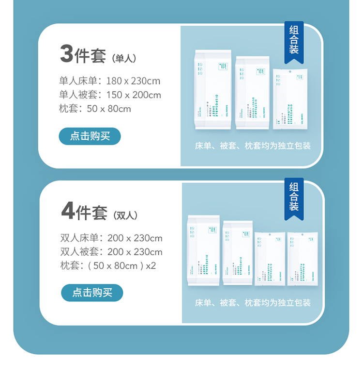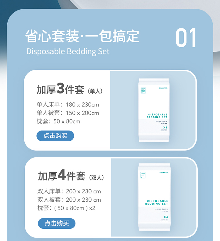 蕉趣Banana Trip一次性床单被套枕套床上用品三件套/四件套