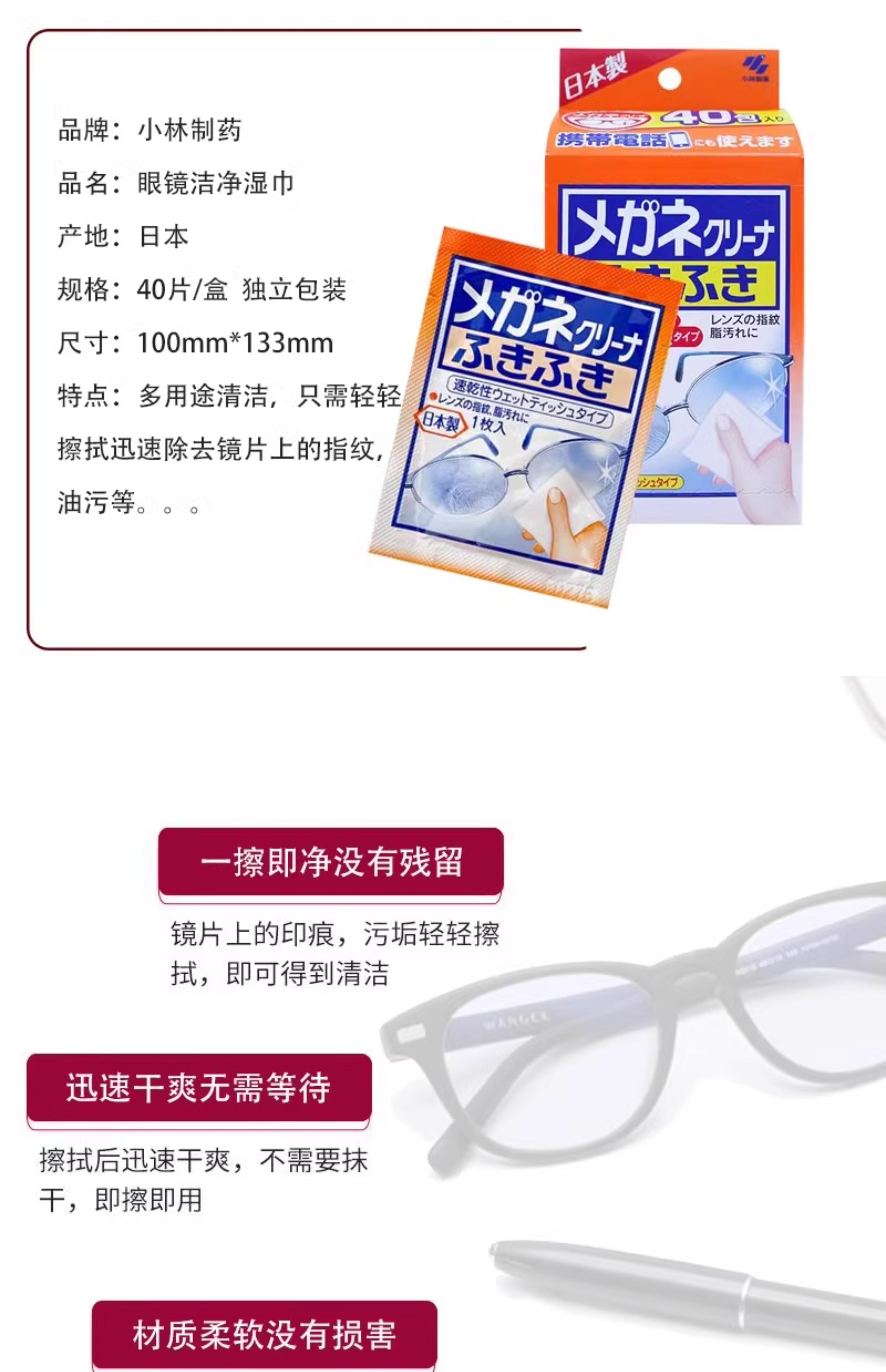 小林眼镜清洁纸40片/118116 擦掉污垢不留痕迹40片一盒