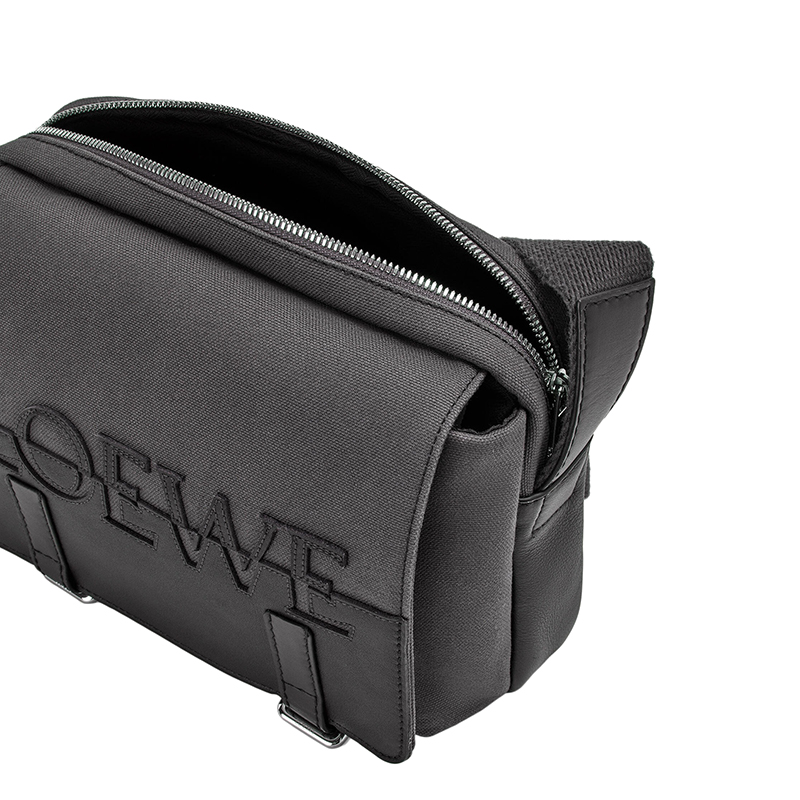 【包税】LOEWE/罗意威 21秋冬新款Signature系列 男士XS款无烟煤色/黑色帆布配皮单肩斜挎邮差包0010650992
