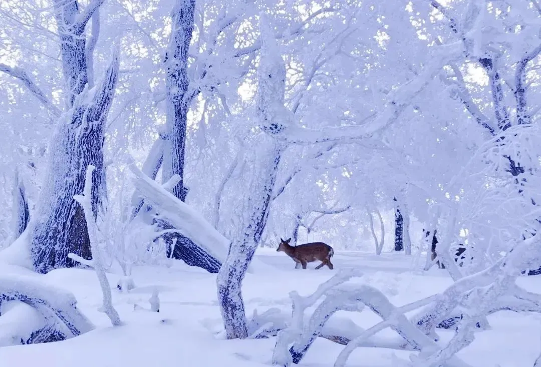 早起前往观赏雾凇,如天气好观赏到十点半左右,冰冷的雾气逐渐幻化成暖暖的氤氲,映得对岸的雾凇若隐若现,整个画面宛如仙境。这里的树木没有人工的雕琢,都是大自然的鬼斧神工。随后抵达四方顶游览冰雪王国,在这里,您将有机会邂逅雪地中的梅花鹿。