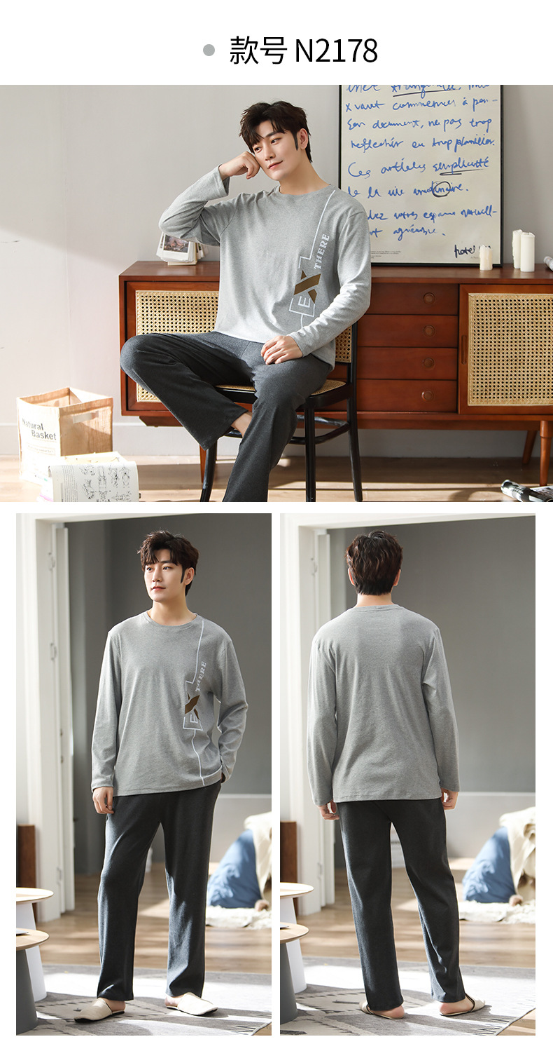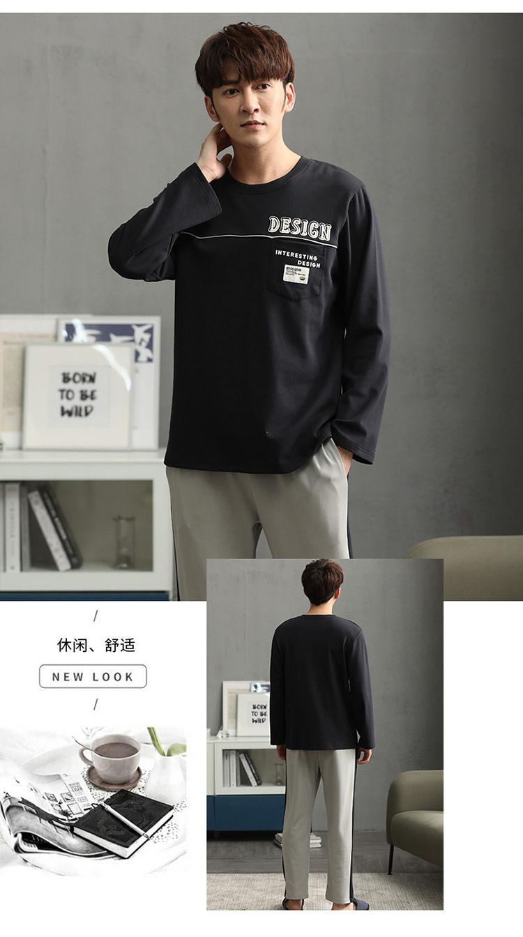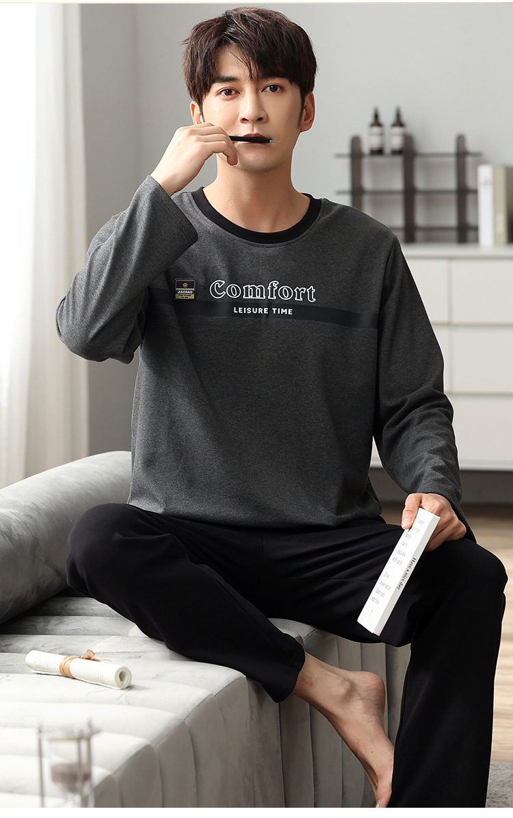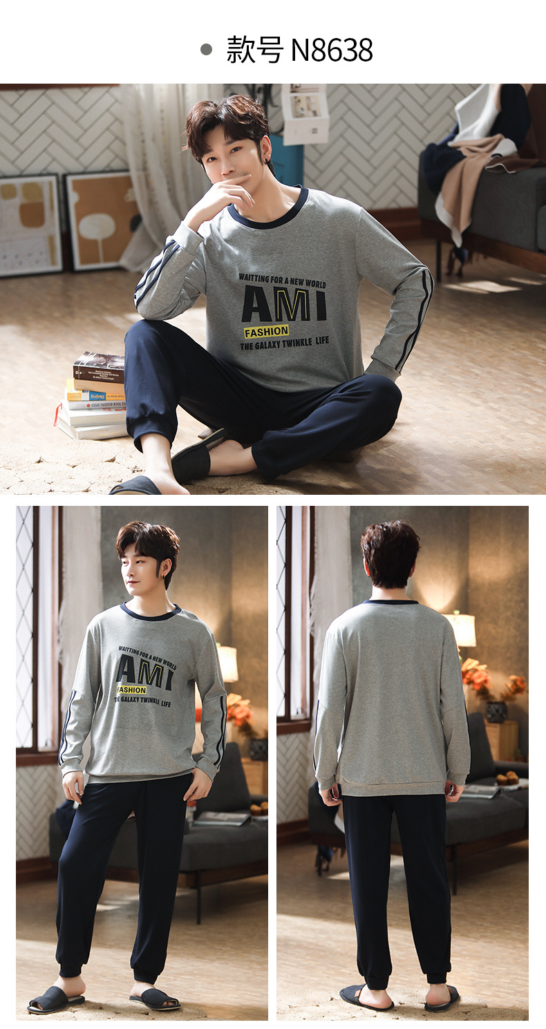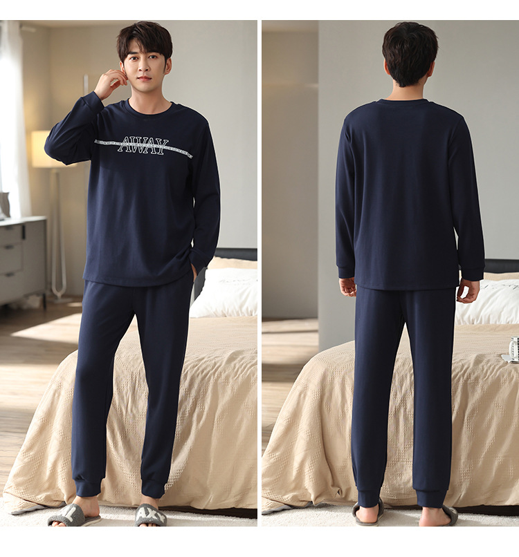新品纯棉男士睡衣长袖长裤可外穿圆领透气两件套家居服男