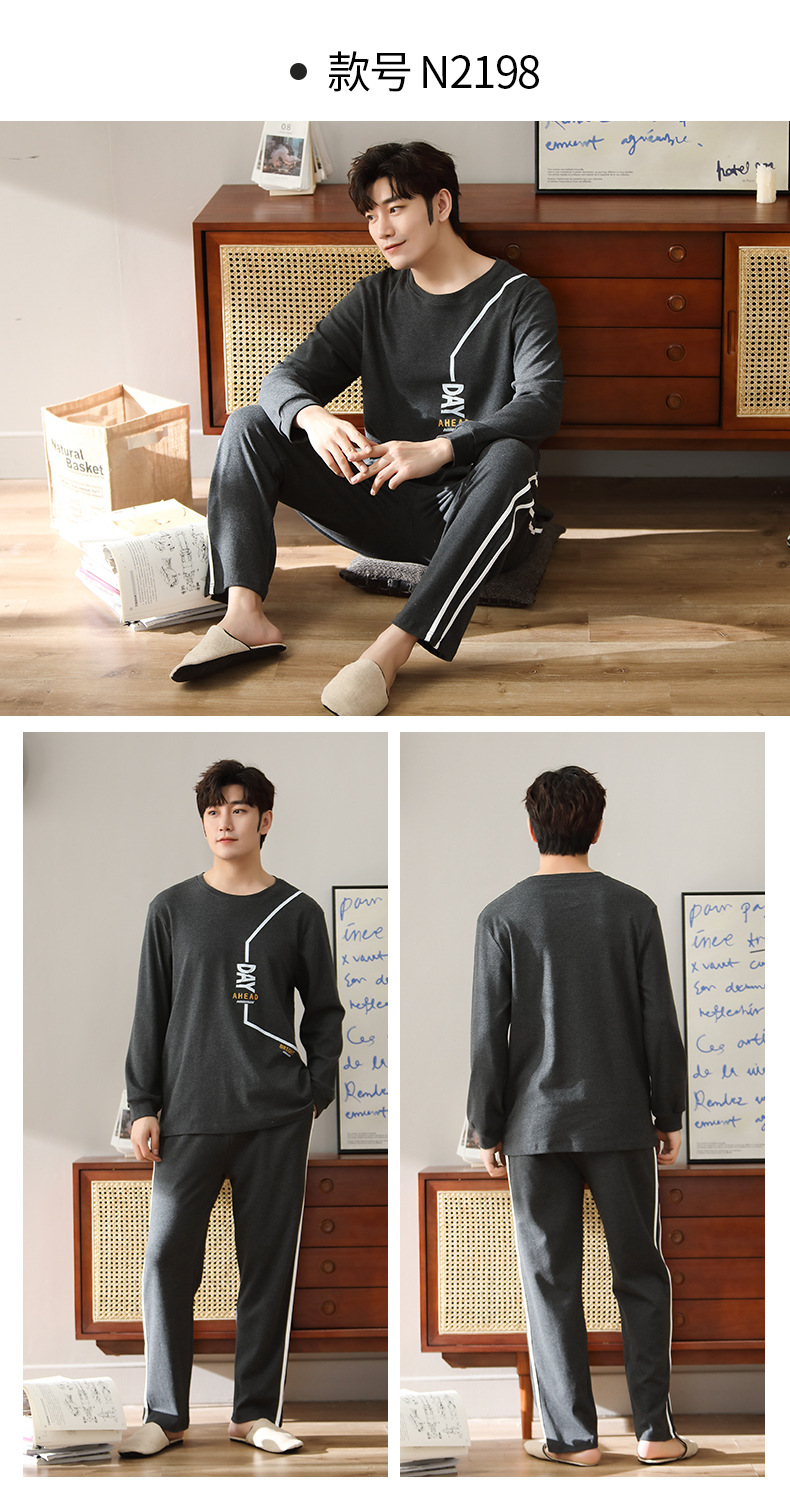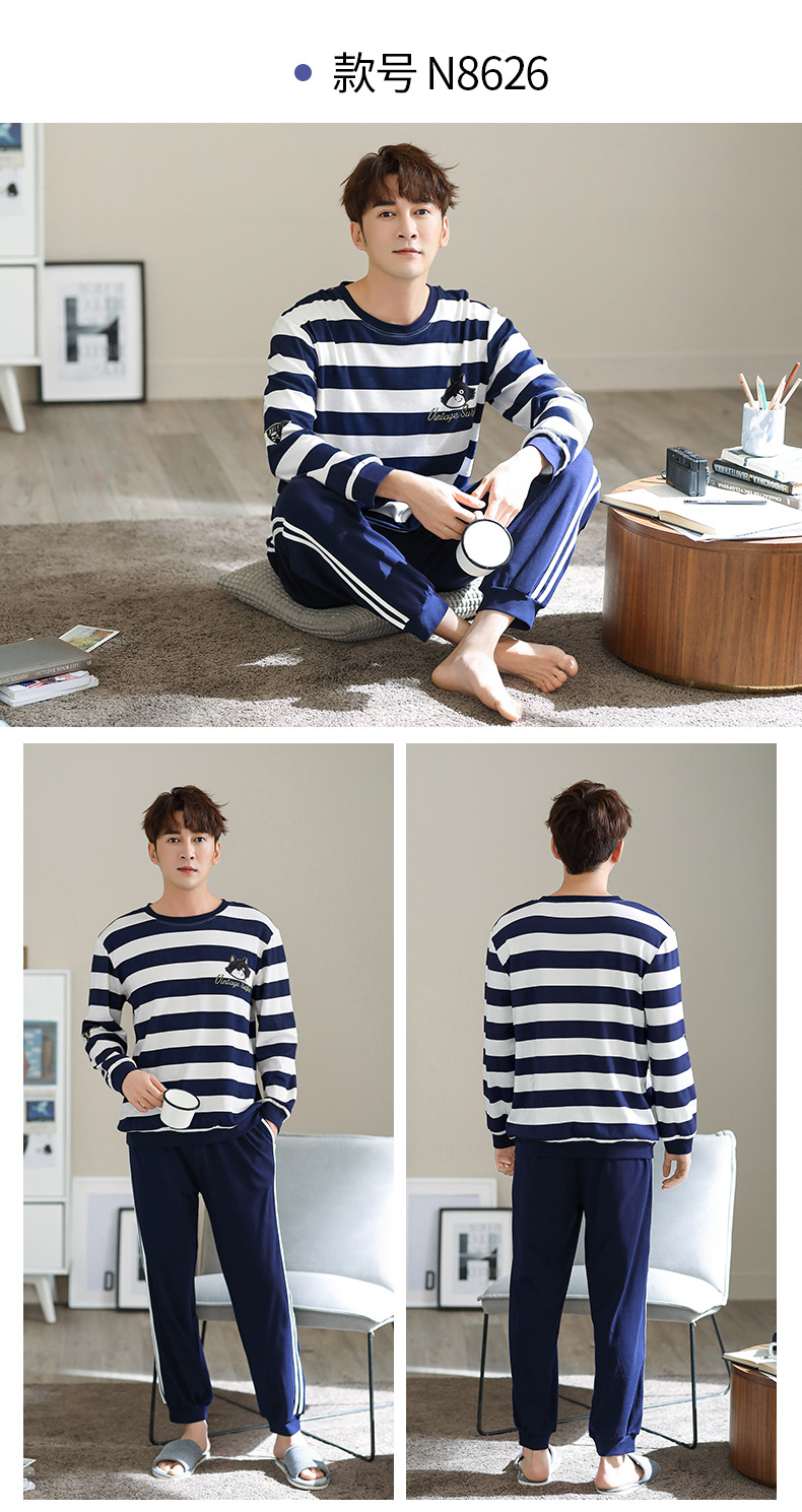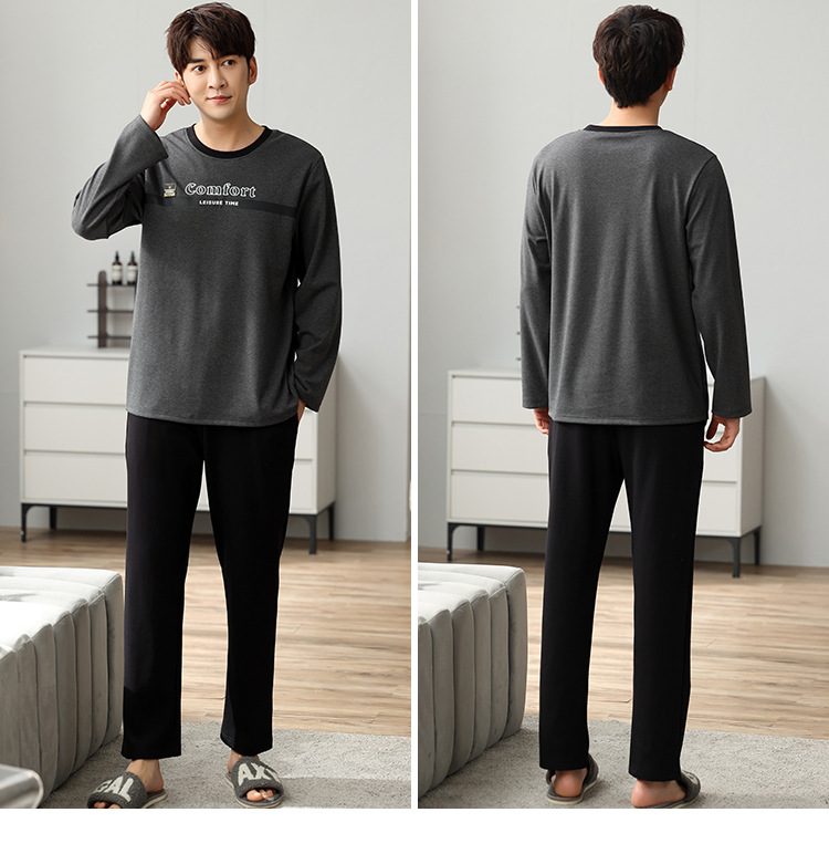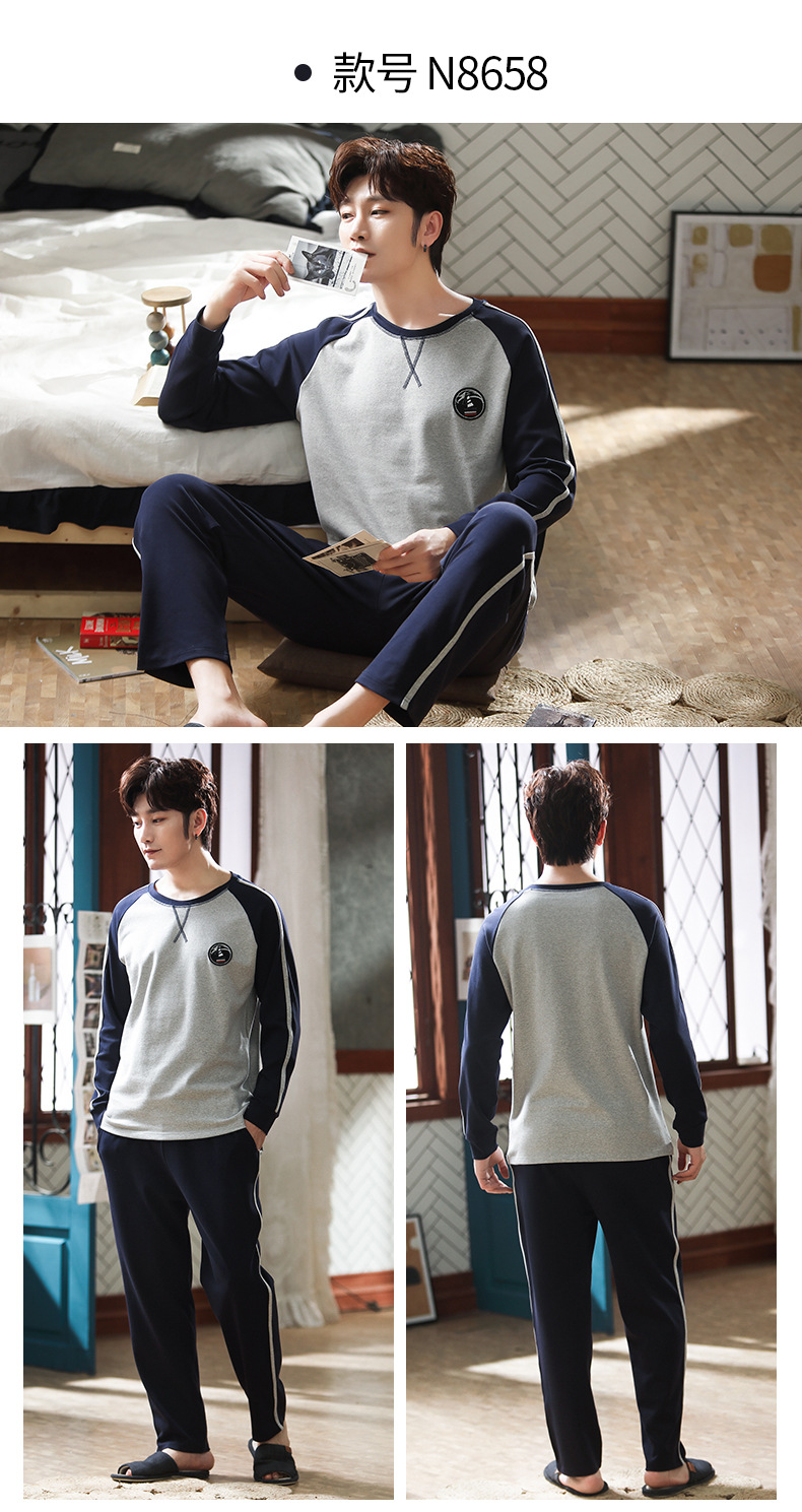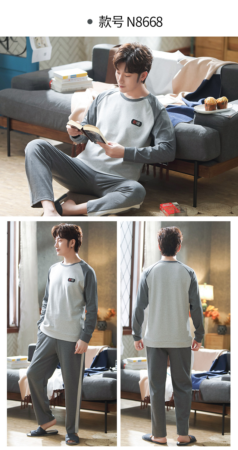 新品纯棉男士睡衣长袖长裤可外穿圆领透气两件套家居服男